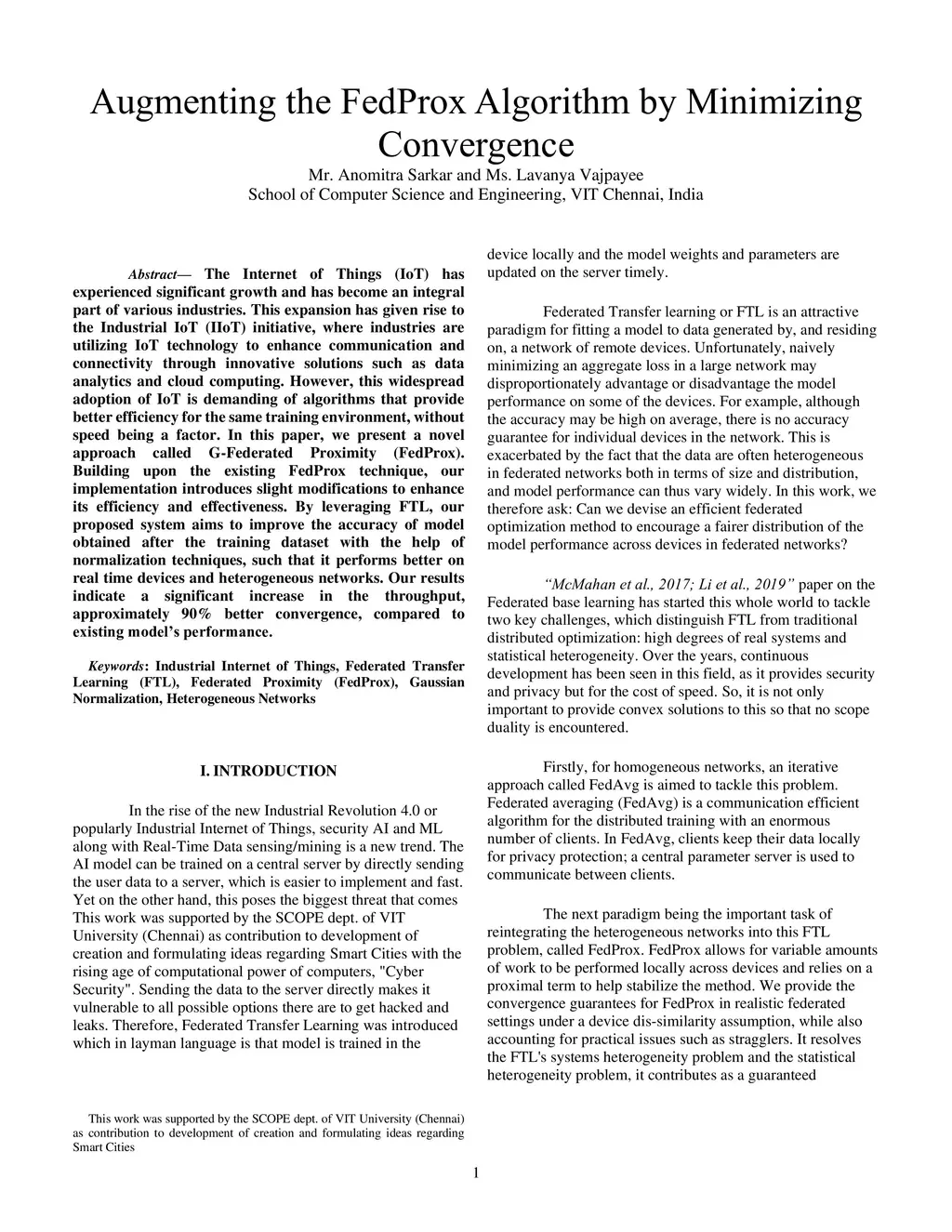 The Internet of Things has experienced significant growth and has become an integral part of various industries. This expansion has given rise to the Industrial IoT initiative where industries are utilizing IoT technology to enhance communication and connectivity through innovative solutions such as data analytics and cloud computing. However this widespread adoption of IoT is demanding of algorithms that provide better efficiency for the same training environment without speed being a factor. In this paper we present a novel approach called G Federated Proximity. Building upon the existing FedProx technique our implementation introduces slight modifications to enhance its efficiency and effectiveness. By leveraging FTL our proposed system aims to improve the accuracy of model obtained after the training dataset with the help of normalization techniques such that it performs better on real time devices and heterogeneous networks Our results indicate a significant increase in the throughput of approximately 90% better convergence compared to existing model performance.
