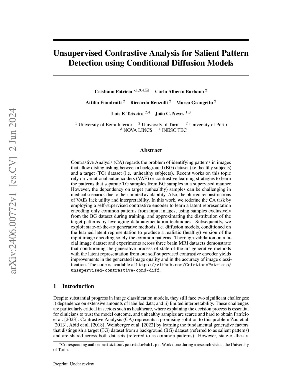 Unsupervised contrastive analysis for anomaly detection in brain MRIs via conditional diffusion models
