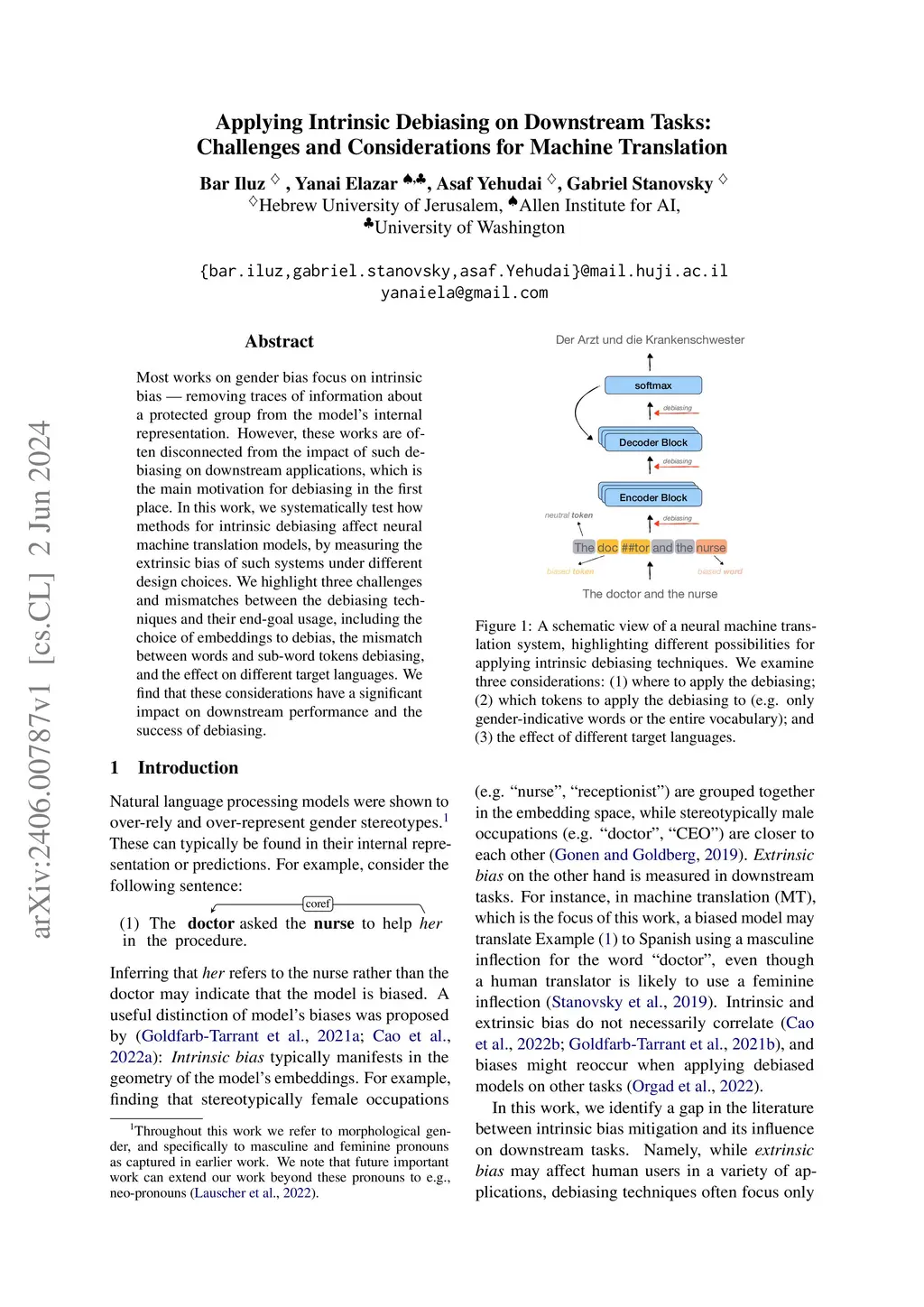 Applying Intrinsic Debiasing on Downstream Tasks: Challenges and
