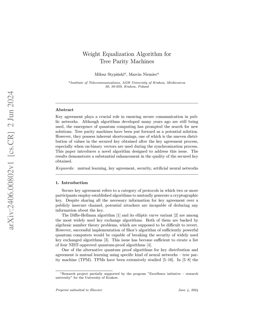 Key agreement plays a crucial role in ensuring secure communication in public networks. Although algorithms developed many years ago are still being used, the emergence of quantum computing has prompted the search for new solutions. Tree parity machines have been put forward as a potential solution. However, they possess inherent shortcomings, one of which is the uneven distribution of values in the secured key obtained after the key agreement process, especially when on-binary vectors are used during the synchronization process. This paper introduces a novel algorithm designed to address this issue. The results demonstrate a substantial enhancement in the quality of the secured key obtained.