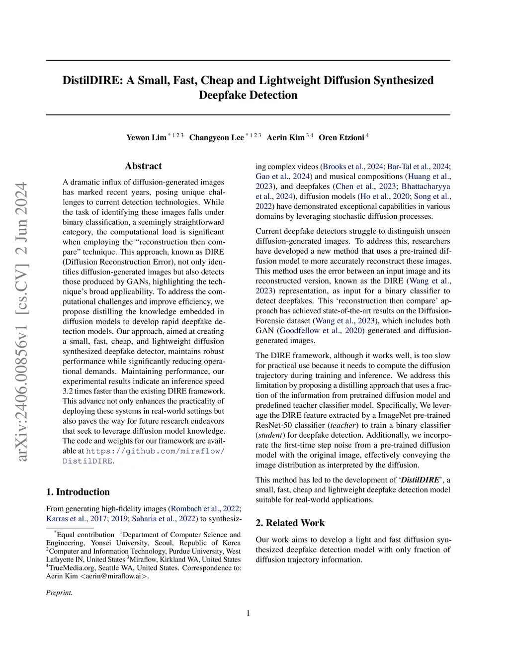 A dramatic influx of diffusion-generated images has marked recent years, posing unique challenges to current detection technologies. While the task of identifying these images falls under binary classification, a seemingly straightforward category, the computational load is significant when employing the "reconstruction then compare" technique. This approach, known as DIRE (Diffusion Reconstruction Error), not only identifies diffusion-generated images but also detects those produced by GANs, highlighting the technique's broad applicability. To address the computational challenges and improve efficiency, we propose distilling the knowledge embedded in diffusion models to develop rapid deepfake detection models. Our approach, aimed at creating a small, fast, cheap, and lightweight diffusion synthesized deepfake detector, maintains robust performance while significantly reducing operational demands. Maintaining performance, our experimental results indicate an inference speed 3.2 times faster than the existing DIRE framework. This advance not only enhances the practicality of deploying these systems in real-world settings but also paves the way for future research endeavors that seek to leverage diffusion model knowledge.