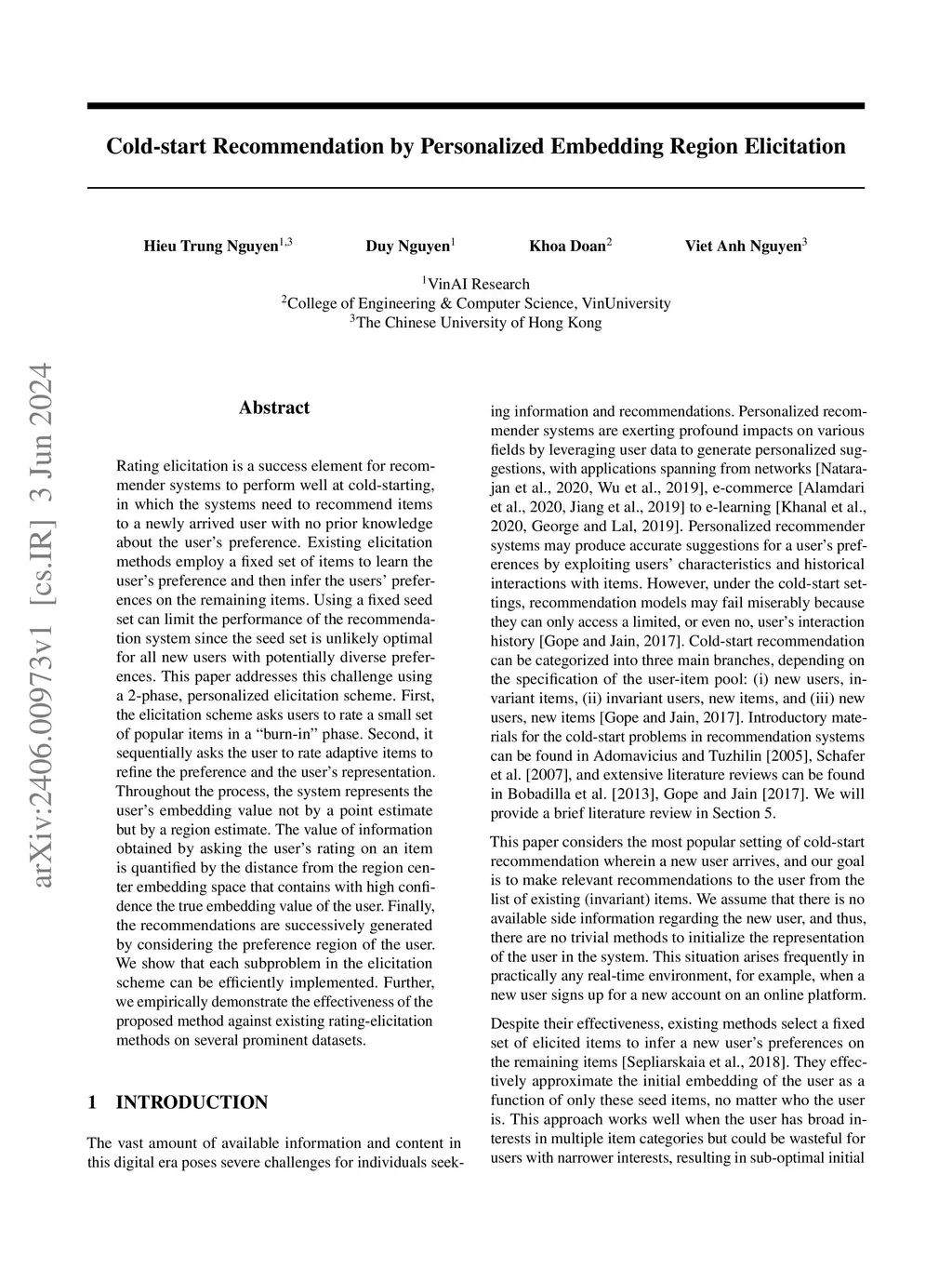 Cold-start Recommendation by Personalized Embedding Region Elicitation