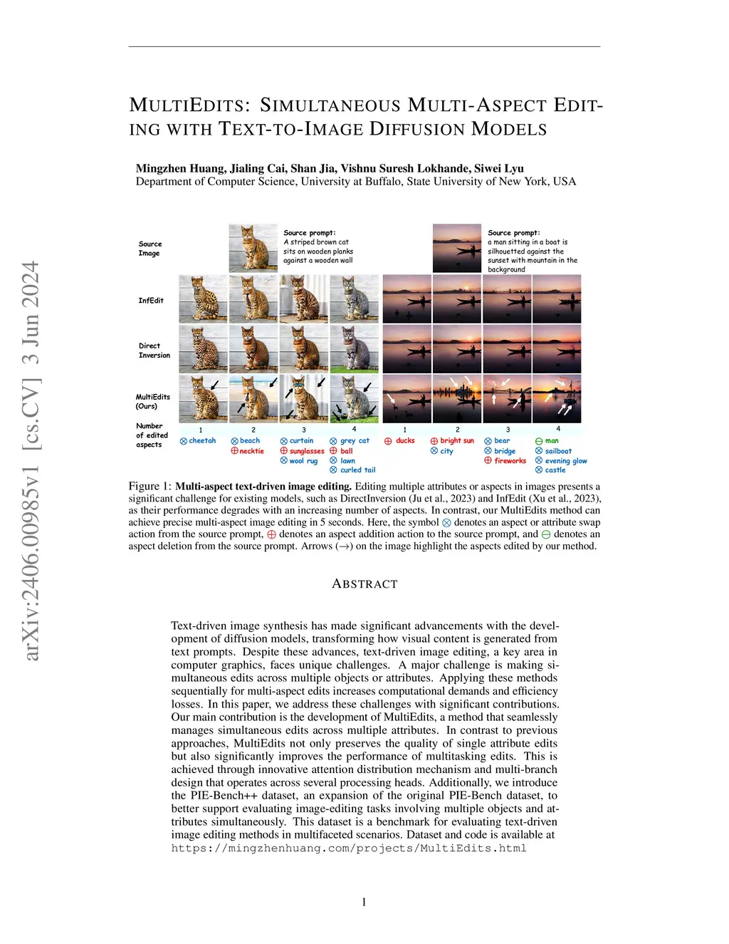 Text-driven image synthesis has made significant advancements with the development of diffusion models, transforming how visual content is generated from text prompts. Despite these advances, text-driven image editing, a key area in computer graphics, faces unique challenges. A major challenge is making simultaneous edits across multiple objects or attributes. Applying these methods sequentially for multi-attribute edits increases computational demands and efficiency losses. In this paper, we address these challenges with significant contributions. Our main contribution is the development of ParallelEdits, a method that seamlessly manages simultaneous edits across multiple attributes. In contrast to previous approaches, ParallelEdits not only preserves the quality of single attribute edits but also significantly improves the performance of multitasking edits. This is achieved through innovative attention distribution mechanism and multi-branch design that operates across several processing heads. Additionally, we introduce the PIE-Bench++ dataset, an expansion of the original PIE-Bench dataset, to better support evaluating image-editing tasks involving multiple objects and attributes simultaneously. This dataset is a benchmark for evaluating text-driven image editing methods in multifaceted scenarios.