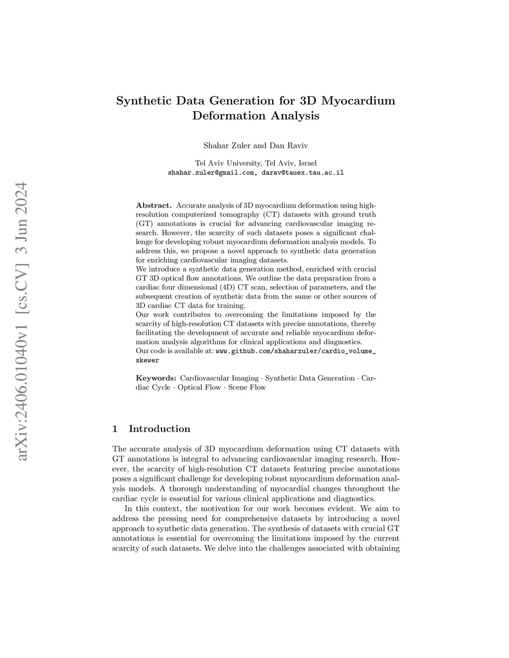 Accurate analysis of 3D myocardium deformation using high-resolution computerized tomography (CT) datasets with ground truth (GT) annotations is crucial for advancing cardiovascular imaging research. However, the scarcity of such datasets poses a significant challenge for developing robust myocardium deformation analysis models. To address this, we propose a novel approach to synthetic data generation for enriching cardiovascular imaging datasets. We introduce a synthetic data generation method, enriched with crucial GT 3D optical flow annotations. We outline the data preparation from a cardiac four-dimensional (4D) CT scan, selection of parameters, and the subsequent creation of synthetic data from the same or other sources of 3D cardiac CT data for training. Our work contributes to overcoming the limitations imposed by the scarcity of high-resolution CT datasets with precise annotations, thereby facilitating the development of accurate and reliable myocardium deformation analysis algorithms for clinical applications and diagnostics. Our code is available at: http://www.github.com/shaharzuler/cardio_volume_skewer