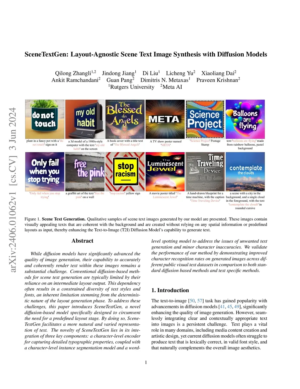 SceneTextGen: Layout-Agnostic Scene Text Image Synthesis with Diffusion Models