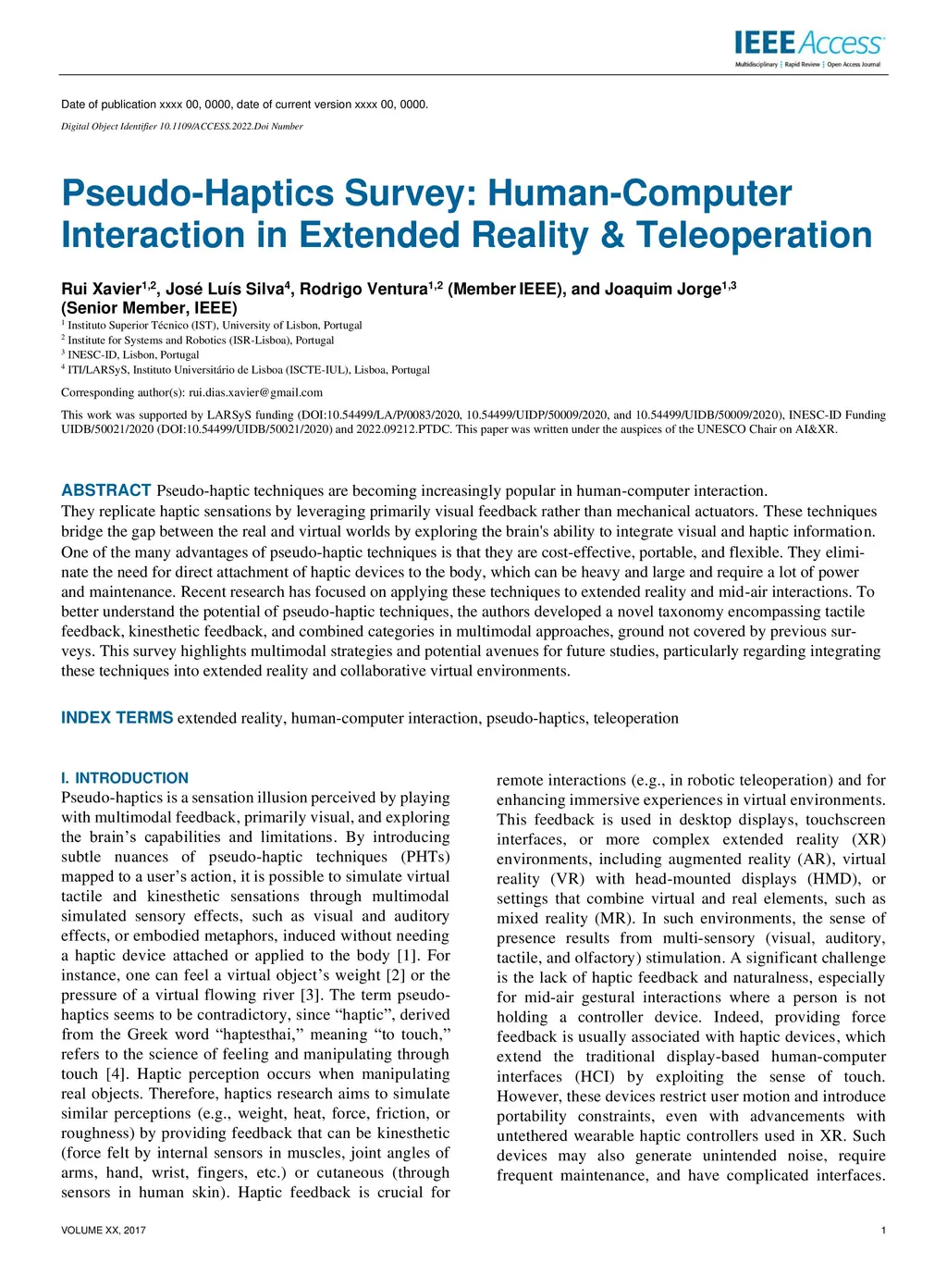 Pseudo-Haptics Survey: Human-Computer Interaction in Extended Reality &