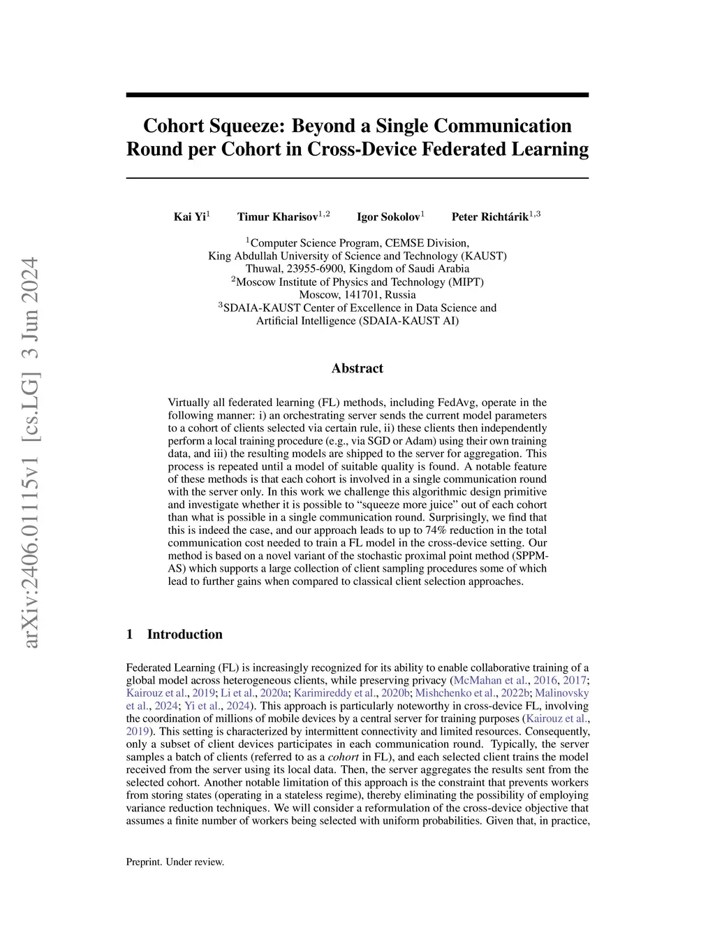 Virtually all federated learning (FL) methods, including FedAvg, operate in the following manner: i) an orchestrating server sends the current model parameters to a cohort of clients selected via certain rule, ii) these clients then independently perform a local training procedure (e.g., via SGD or Adam) using their own training data, and iii) the resulting models are shipped to the server for aggregation. This process is repeated until a model of suitable quality is found. A notable feature of these methods is that each cohort is involved in a single communication round with the server only. In this work we challenge this algorithmic design primitive and investigate whether it is possible to ``squeeze more juice" out of each cohort than what is possible in a single communication round. Surprisingly, we find that this is indeed the case, and our approach leads to up to 74% reduction in the total communication cost needed to train a FL model in the cross-device setting. Our method is based on a novel variant of the stochastic proximal point method (SPPM-AS) which supports a large collection of client sampling procedures some of which lead to further gains when compared to classical client selection approaches.