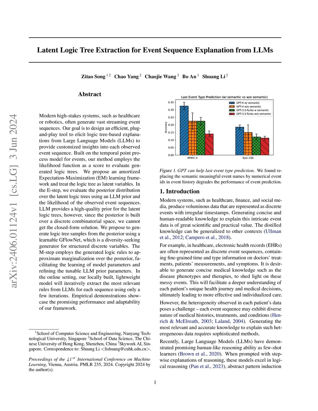 Modern high-stakes systems, such as healthcare or robotics, often generate vast streaming event sequences. Our goal is to design an efficient, plug-and-play tool to elicit logic tree-based explanations from Large Language Models (LLMs) to provide customized insights into each observed event sequence. Built on the temporal point process model for events, our method employs the likelihood function as a score to evaluate generated logic trees. We propose an amortized Expectation-Maximization (EM) learning framework and treat the logic tree as latent variables. In the E-step, we evaluate the posterior distribution over the latent logic trees using an LLM prior and the likelihood of the observed event sequences. LLM provides a high-quality prior for the latent logic trees, however, since the posterior is built over a discrete combinatorial space, we cannot get the closed-form solution. We propose to generate logic tree samples from the posterior using a learnable GFlowNet, which is a diversity-seeking generator for structured discrete variables. The M-step employs the generated logic rules to approximate marginalization over the posterior, facilitating the learning of model parameters and refining the tunable LLM prior parameters. In the online setting, our locally built, lightweight model will iteratively extract the most relevant rules from LLMs for each sequence using only a few iterations. Empirical demonstrations showcase the promising performance and adaptability of our framework.