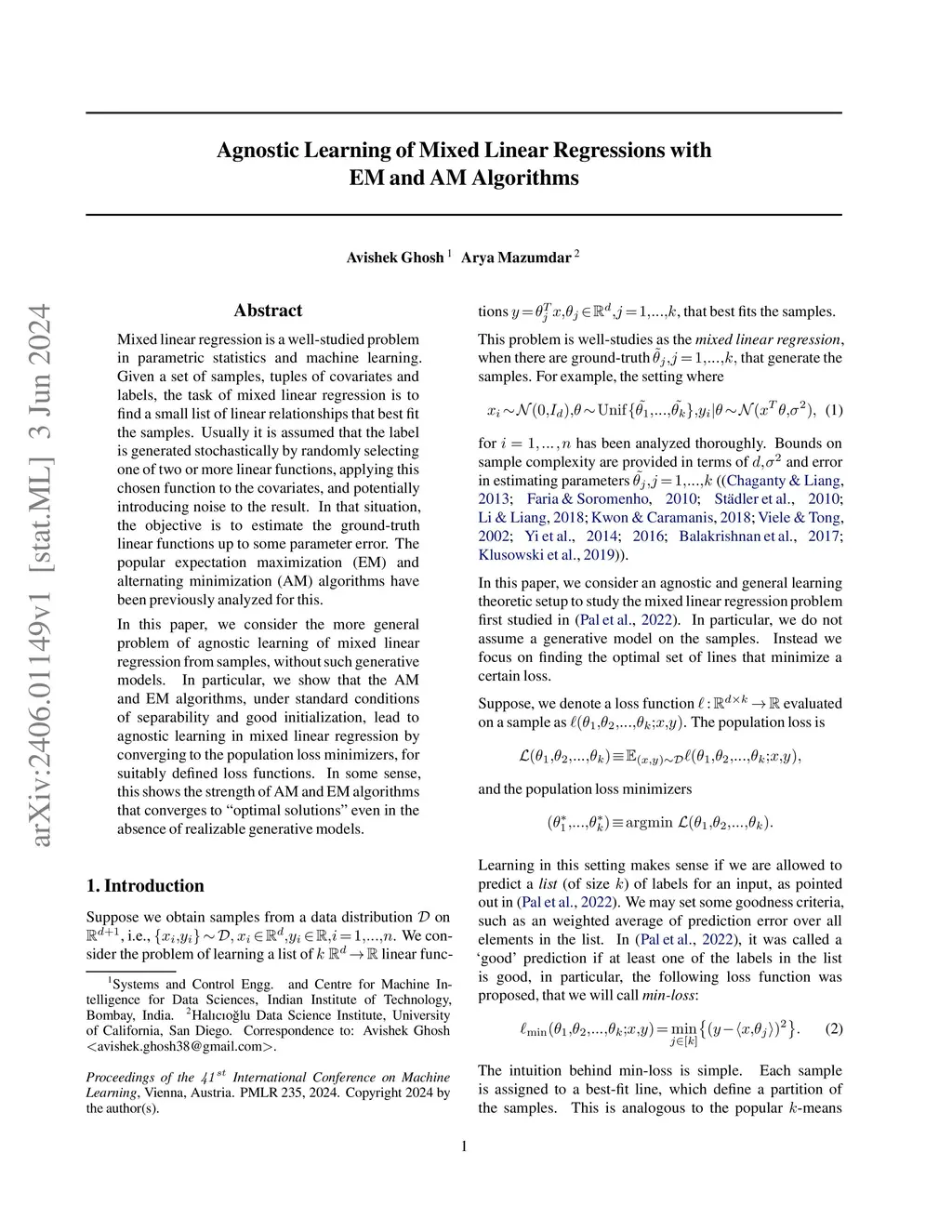 Mixed linear regression is a well-studied problem in parametric statistics and machine learning. Given a set of samples, tuples of covariates and labels, the task of mixed linear regression is to find a small list of linear relationships that best fit the samples. Usually it is assumed that the label is generated stochastically by randomly selecting one of two or more linear functions, applying this chosen function to the covariates, and potentially introducing noise to the result. In that situation, the objective is to estimate the ground-truth linear functions up to some parameter error. The popular expectation maximization (EM) and alternating minimization (AM) algorithms have been previously analyzed for this. In this paper, we consider the more general problem of agnostic learning of mixed linear regression from samples, without such generative models. In particular, we show that the AM and EM algorithms, under standard conditions of separability and good initialization, lead to agnostic learning in mixed linear regression by converging to the population loss minimizers, for suitably defined loss functions. In some sense, this shows the strength of AM and EM algorithms that converges to ``optimal solutions'' even in the absence of realizable generative models.