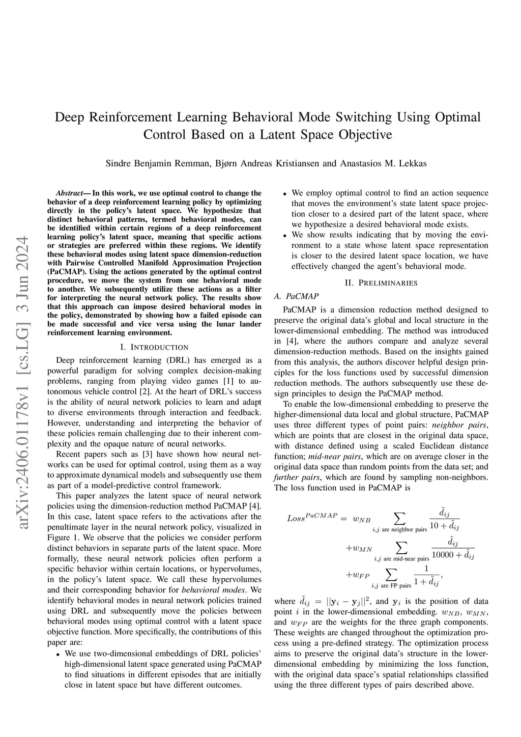 Deep Reinforcement Learning Behavioral Mode Switching Using Optimal