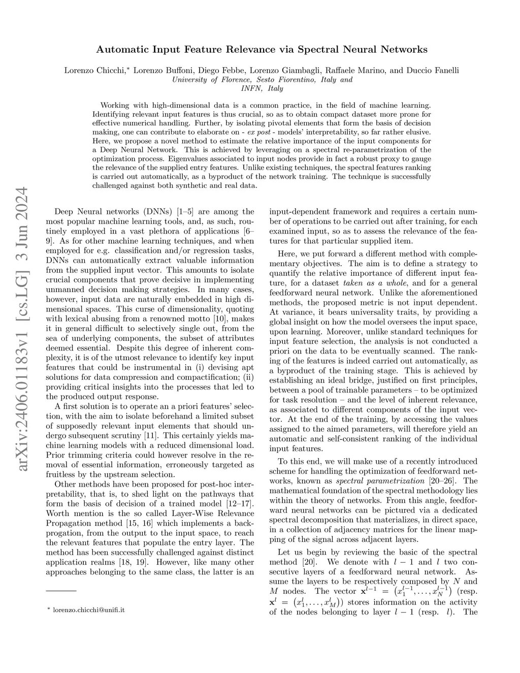 Automatic Input Feature Relevance via Spectral Neural Networks