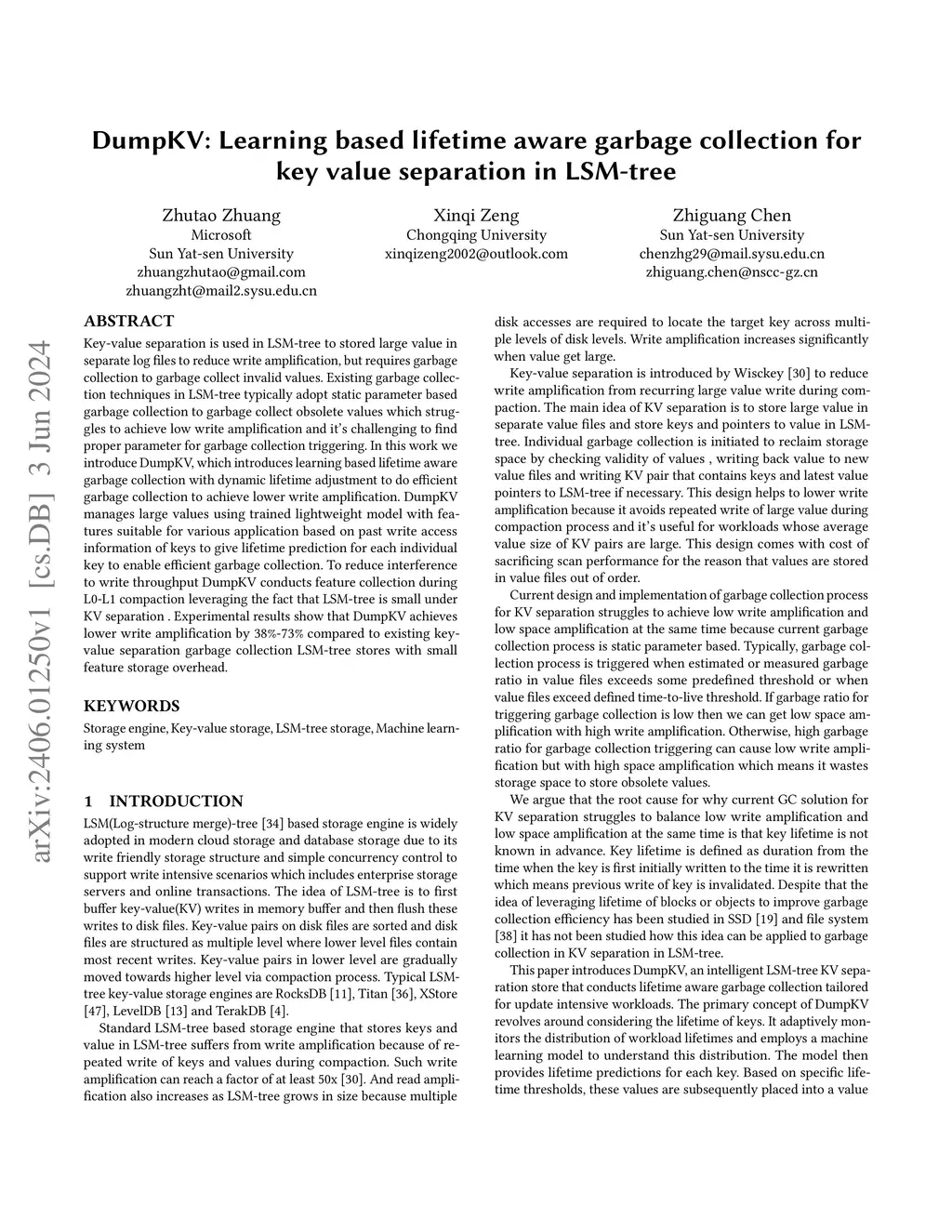 DumpKV: Learning based lifetime aware garbage collection for key value