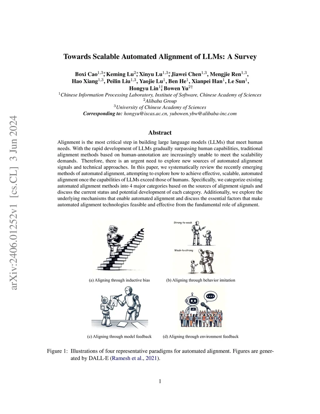 Alignment is the most critical step in building large language models (LLMs) that meet human needs. With the rapid development of LLMs gradually surpassing human capabilities, traditional alignment methods based on human-annotation are increasingly unable to meet the scalability demands. Therefore, there is an urgent need to explore new sources of automated alignment signals and technical approaches. In this paper, we systematically review the recently emerging methods of automated alignment, attempting to explore how to achieve effective, scalable, automated alignment once the capabilities of LLMs exceed those of humans. Specifically, we categorize existing automated alignment methods into 4 major categories based on the sources of alignment signals and discuss the current status and potential development of each category. Additionally, we explore the underlying mechanisms that enable automated alignment and discuss the essential factors that make automated alignment technologies feasible and effective from the fundamental role of alignment.