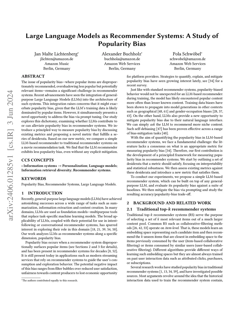 Large Language Models as Recommender Systems: A Study of Popularity Bias