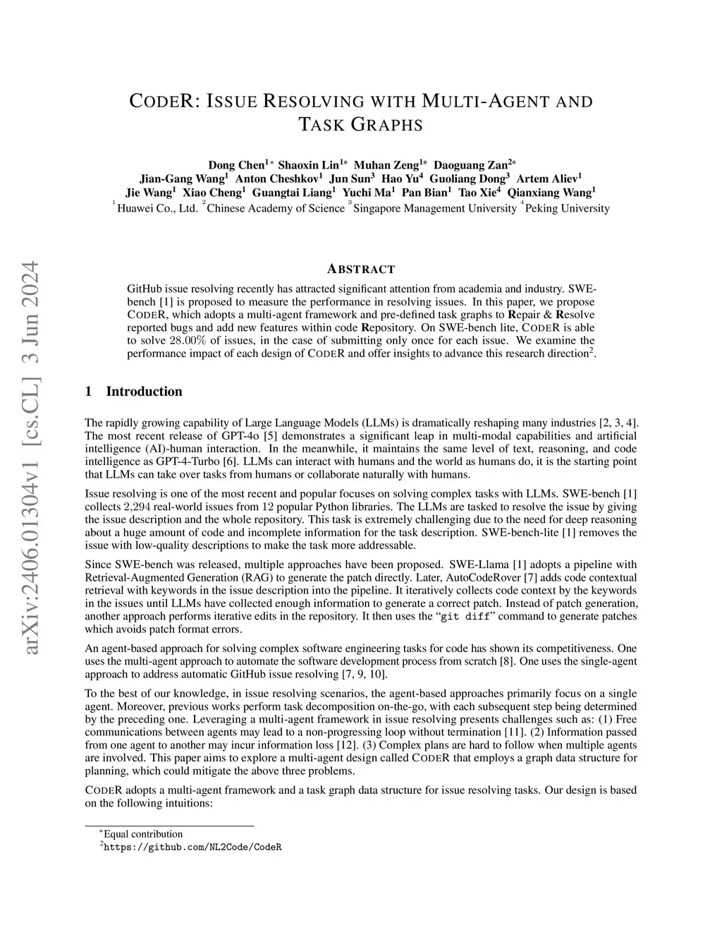 CodeR: Issue Resolving with Multi-Agent and Task Graphs