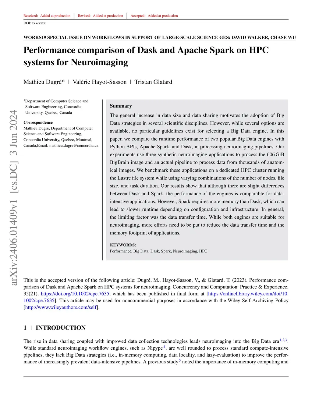 Performance comparison of Dask and Apache Spark on HPC systems for