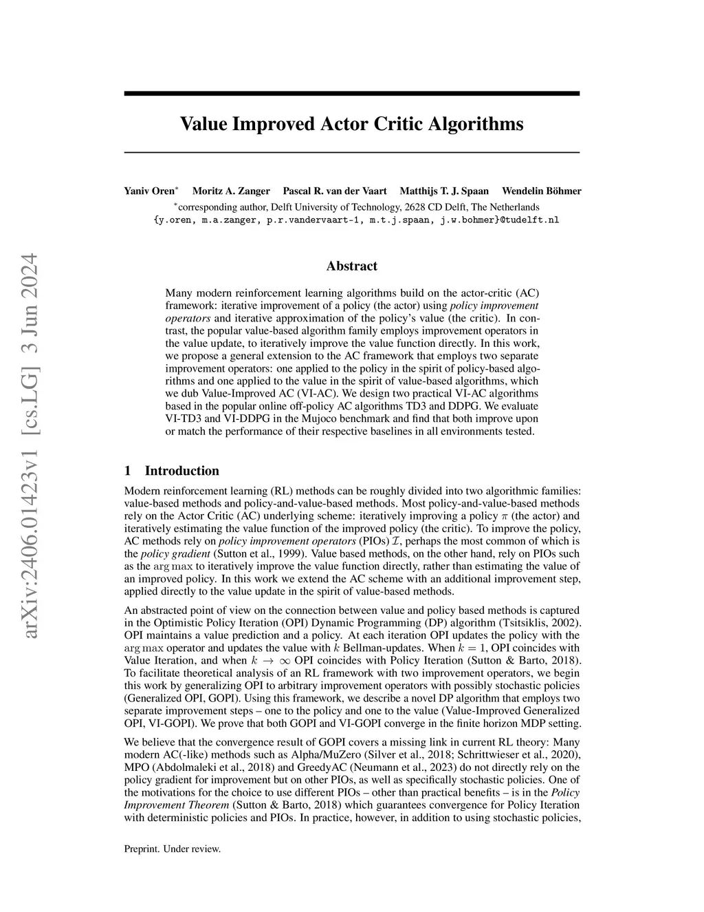 Value Improved Actor Critic Algorithms
