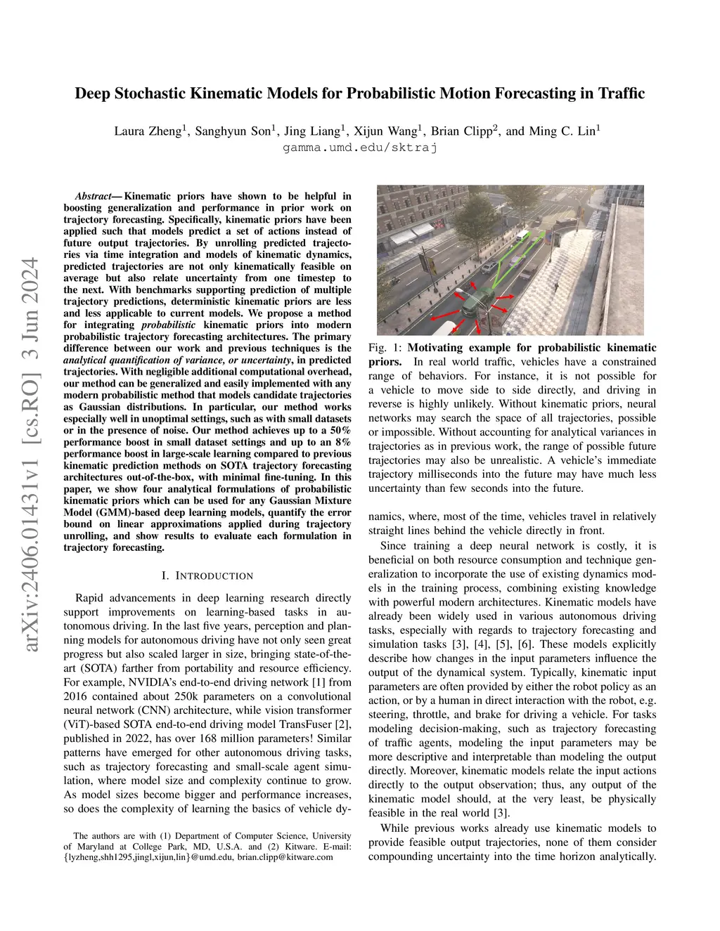 Deep Stochastic Kinematic Models for Probabilistic Motion Forecasting in