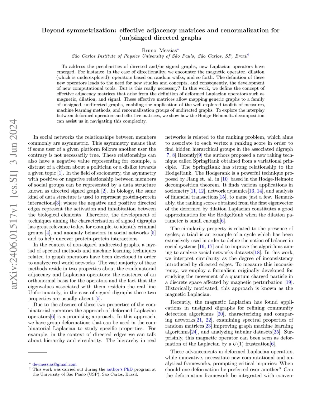Beyond symmetrization: effective adjacency matrices and renormalization