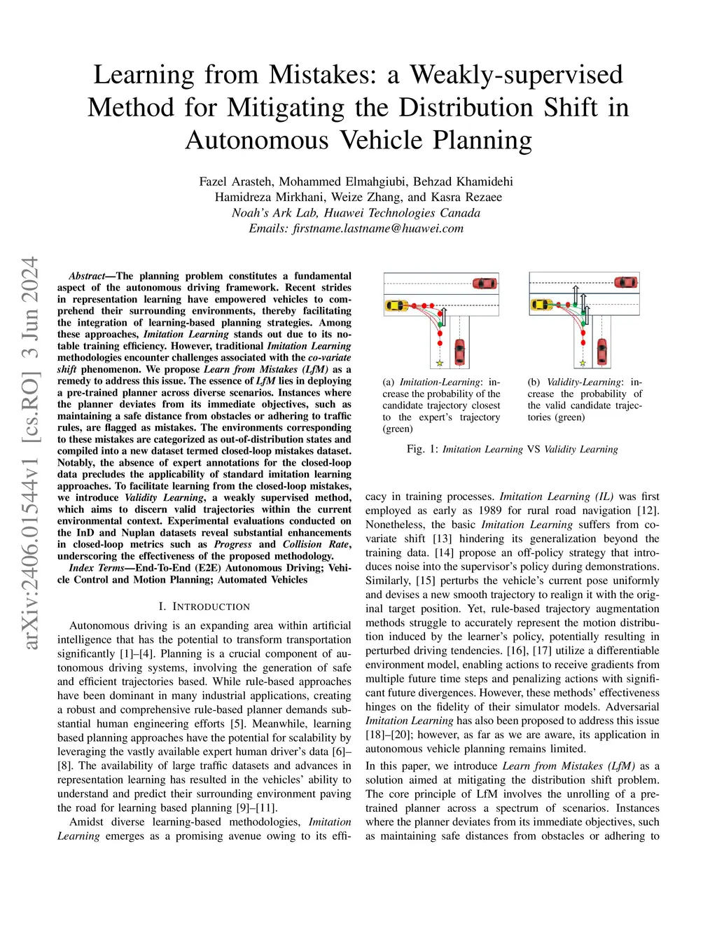 The planning problem constitutes a fundamental aspect of the autonomous driving framework. Recent strides in representation learning have empowered vehicles to comprehend their surrounding environments, thereby facilitating the integration of learning-based planning strategies. Among these approaches, Imitation Learning stands out due to its notable training efficiency. However, traditional Imitation Learning methodologies encounter challenges associated with the co-variate shift phenomenon. We propose Learn from Mistakes (LfM) as a remedy to address this issue. The essence of LfM lies in deploying a pre-trained planner across diverse scenarios. Instances where the planner deviates from its immediate objectives, such as maintaining a safe distance from obstacles or adhering to traffic rules, are flagged as mistakes. The environments corresponding to these mistakes are categorized as out-of-distribution states and compiled into a new dataset termed closed-loop mistakes dataset. Notably, the absence of expert annotations for the closed-loop data precludes the applicability of standard imitation learning approaches. To facilitate learning from the closed-loop mistakes, we introduce Validity Learning, a weakly supervised method, which aims to discern valid trajectories within the current environmental context. Experimental evaluations conducted on the InD and Nuplan datasets reveal substantial enhancements in closed-loop metrics such as Progress and Collision Rate, underscoring the effectiveness of the proposed methodology.