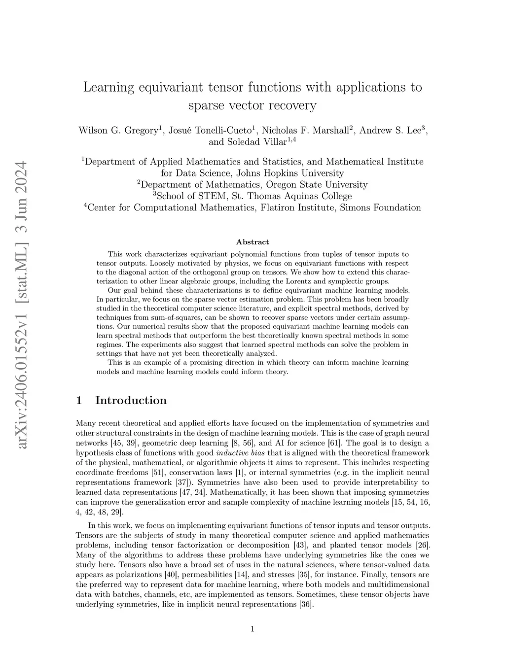 Tensor learning with orthogonal, Lorentz, and symplectic symmetries