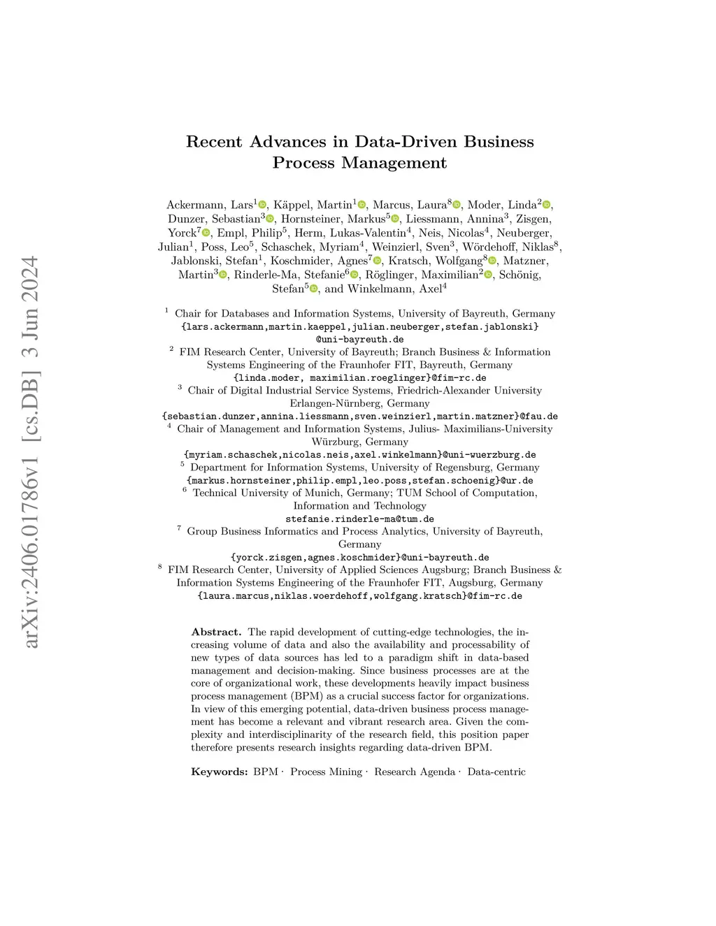 Recent Advances in Data-Driven Business Process Management