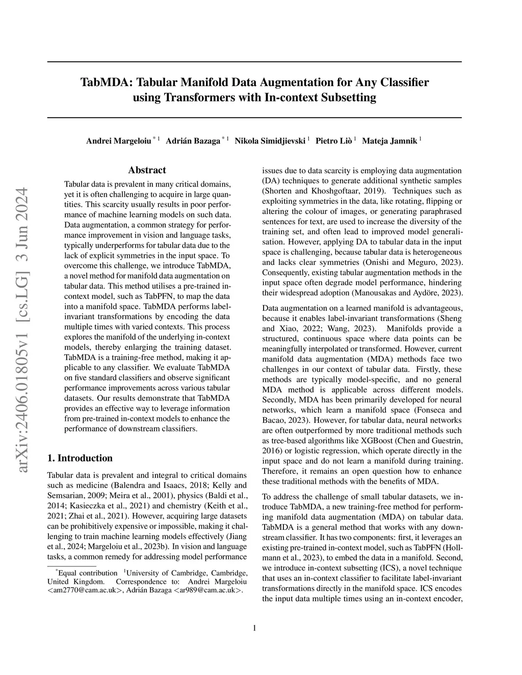 TabMDA: Tabular Manifold Data Augmentation for Any Classifier using