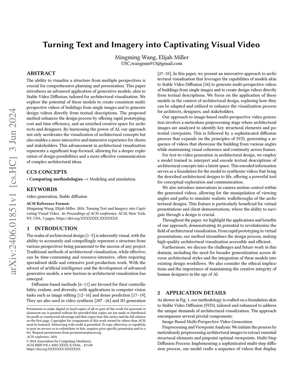 The ability to visualize a structure from multiple perspectives is crucial for comprehensive planning and presentation. This paper introduces an advanced application of generative models, akin to Stable Video Diffusion, tailored for architectural visualization. We explore the potential of these models to create consistent multi-perspective videos of buildings from single images and to generate design videos directly from textual descriptions. The proposed method enhances the design process by offering rapid prototyping, cost and time efficiency, and an enriched creative space for architects and designers. By harnessing the power of AI, our approach not only accelerates the visualization of architectural concepts but also enables a more interactive and immersive experience for clients and stakeholders. This advancement in architectural visualization represents a significant leap forward, allowing for a deeper exploration of design possibilities and a more effective communication of complex architectural ideas.