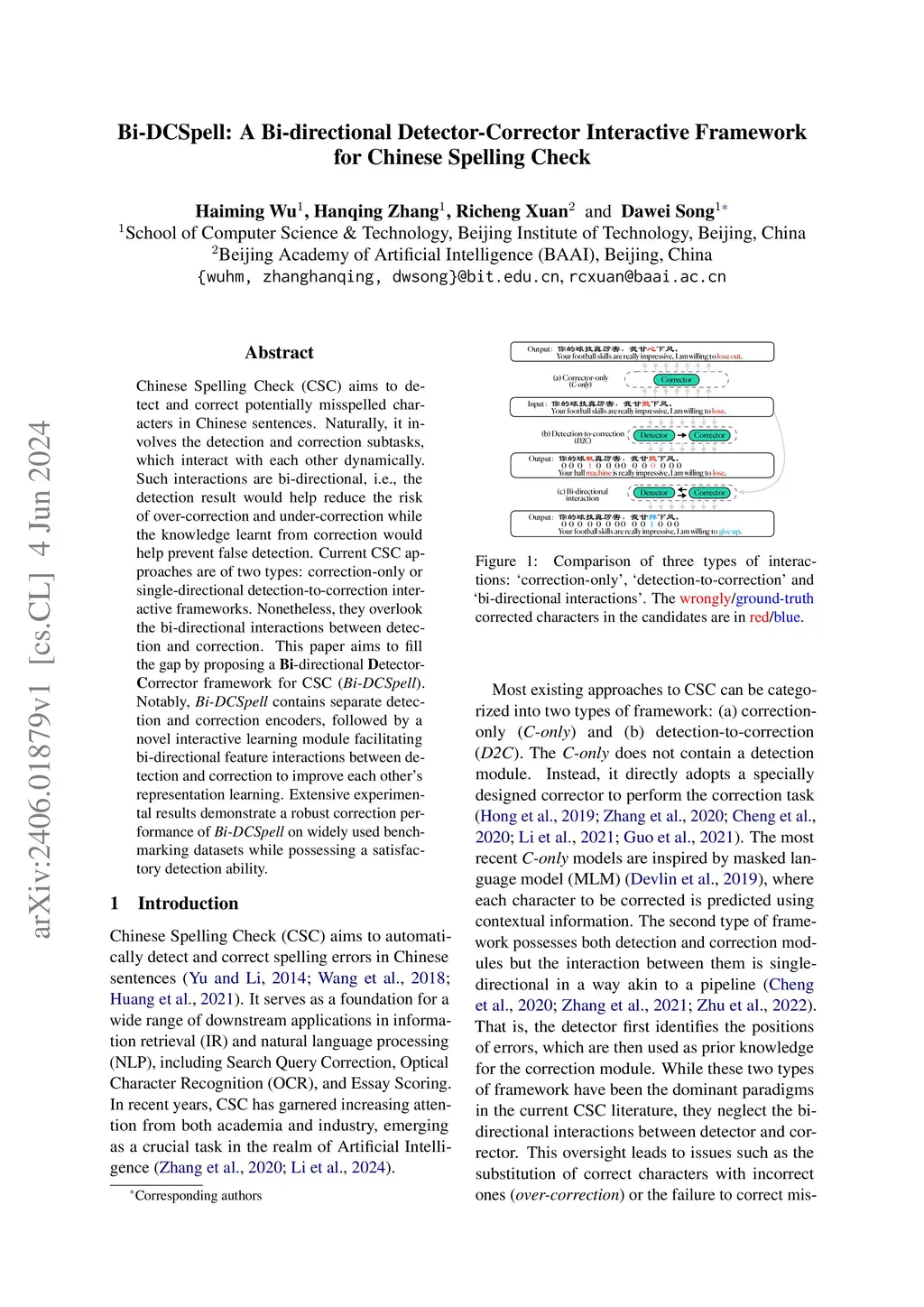 Bi-DCSpell: A Bi-directional Detector-Corrector Interactive Framework