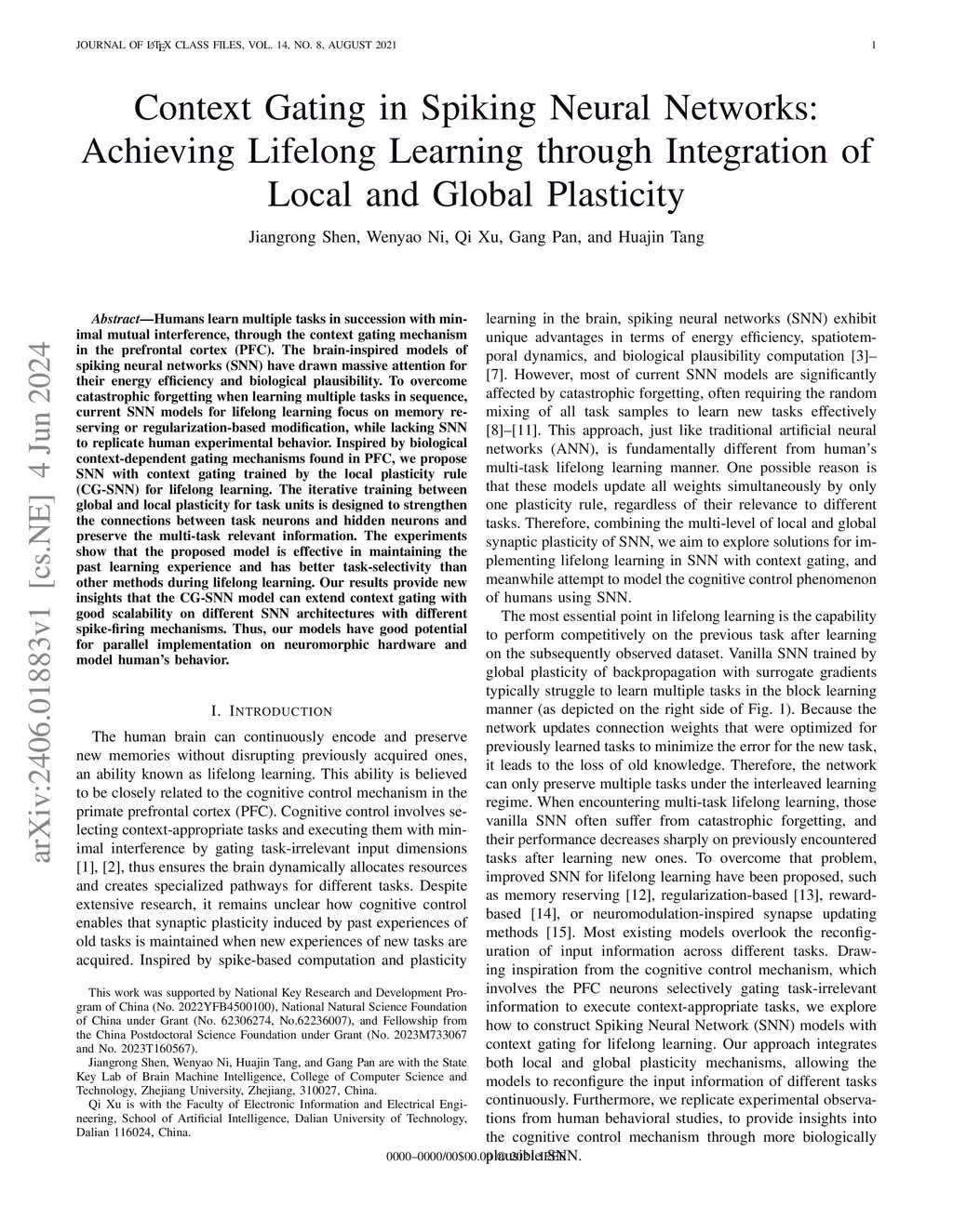 Context Gating in Spiking Neural Networks: Achieving Lifelong Learning