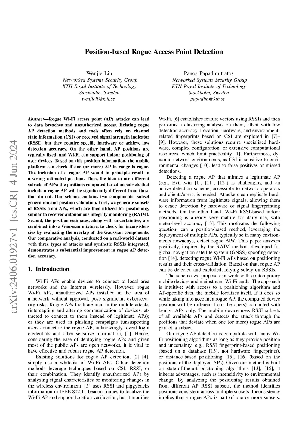 Position-based Rogue Access Point Detection