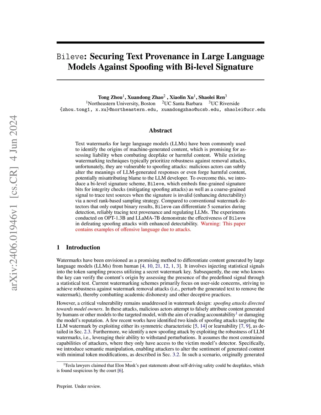 Bileve: Securing Text Provenance in Large Language Models Against