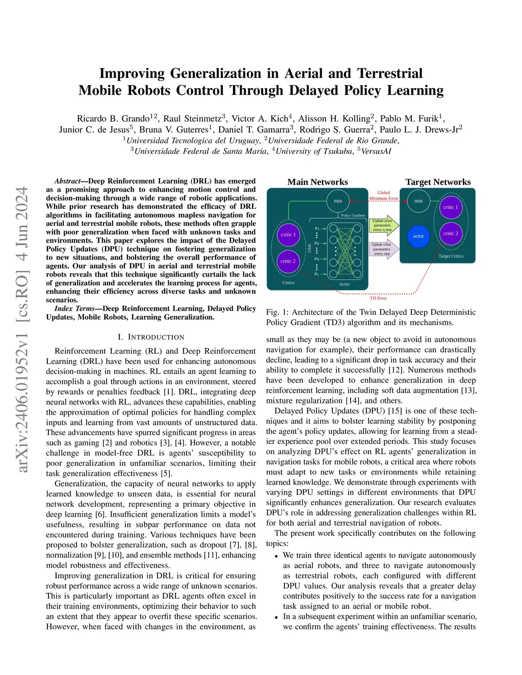 Deep Reinforcement Learning (DRL) has emerged as a promising approach to enhancing motion control and decision-making through a wide range of robotic applications. While prior research has demonstrated the efficacy of DRL algorithms in facilitating autonomous mapless navigation for aerial and terrestrial mobile robots, these methods often grapple with poor generalization when faced with unknown tasks and environments. This paper explores the impact of the Delayed Policy Updates (DPU) technique on fostering generalization to new situations, and bolstering the overall performance of agents. Our analysis of DPU in aerial and terrestrial mobile robots reveals that this technique significantly curtails the lack of generalization and accelerates the learning process for agents, enhancing their efficiency across diverse tasks and unknown scenarios.