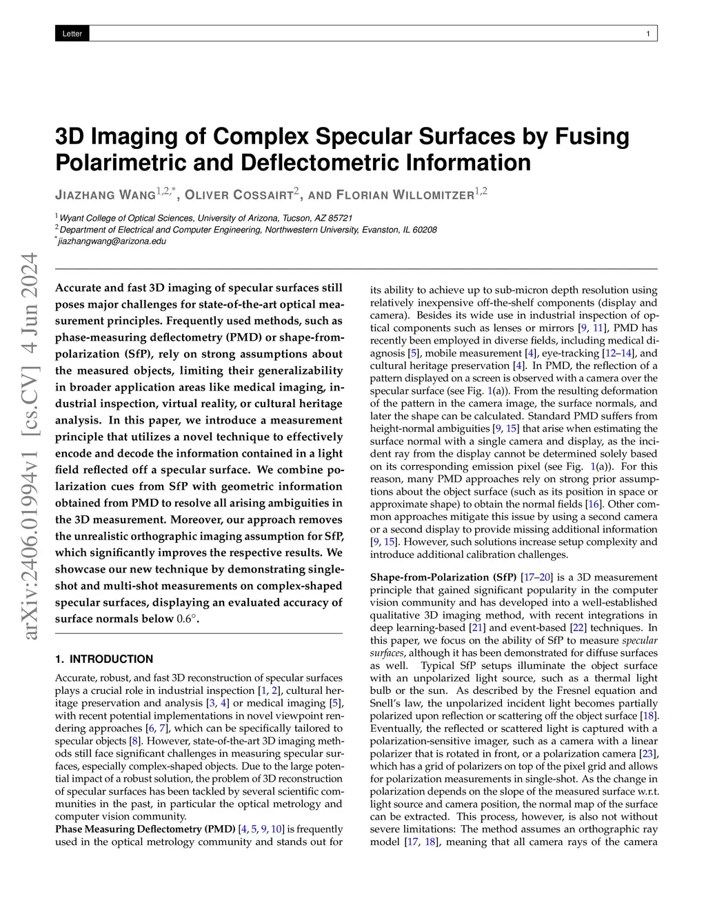 Accurate and fast 3D imaging of specular surfaces still poses major challenges for state-of-the-art optical measurement principles. Frequently used methods, such as phase-measuring deflectometry (PMD) or shape-from-polarization (SfP), rely on strong assumptions about the measured objects, limiting their generalizability in broader application areas like medical imaging, industrial inspection, virtual reality, or cultural heritage analysis. In this paper, we introduce a measurement principle that utilizes a novel technique to effectively encode and decode the information contained in a light field reflected off a specular surface. We combine polarization cues from SfP with geometric information obtained from PMD to resolve all arising ambiguities in the 3D measurement. Moreover, our approach removes the unrealistic orthographic imaging assumption for SfP, which significantly improves the respective results. We showcase our new technique by demonstrating single-shot and multi-shot measurements on complex-shaped specular surfaces, displaying an evaluated accuracy of surface normals below .