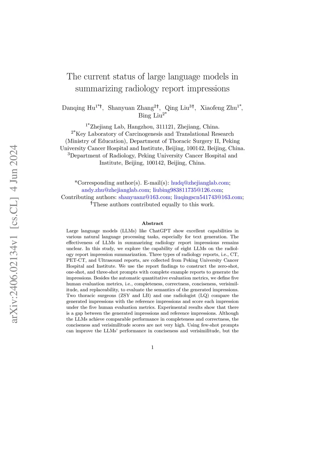 The current status of large language models in summarizing radiology