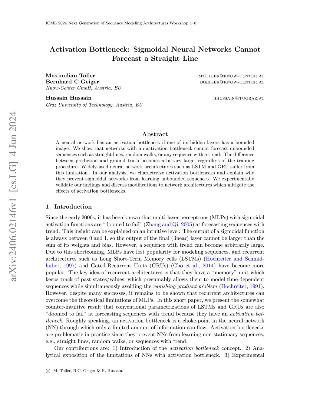 Activation Bottleneck: Sigmoidal Neural Networks Cannot Forecast a
