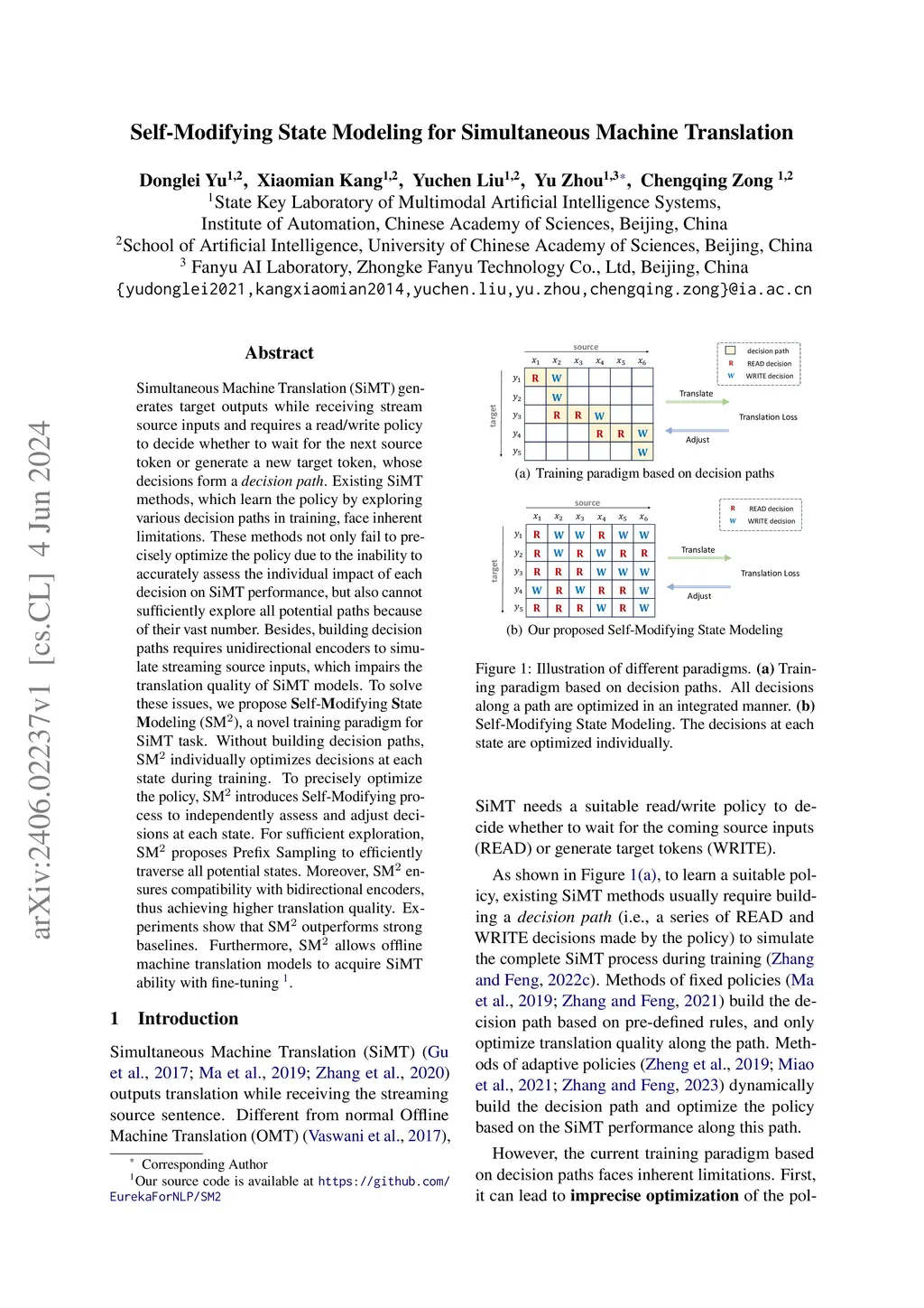Self-Modifying State Modeling for Simultaneous Machine Translation