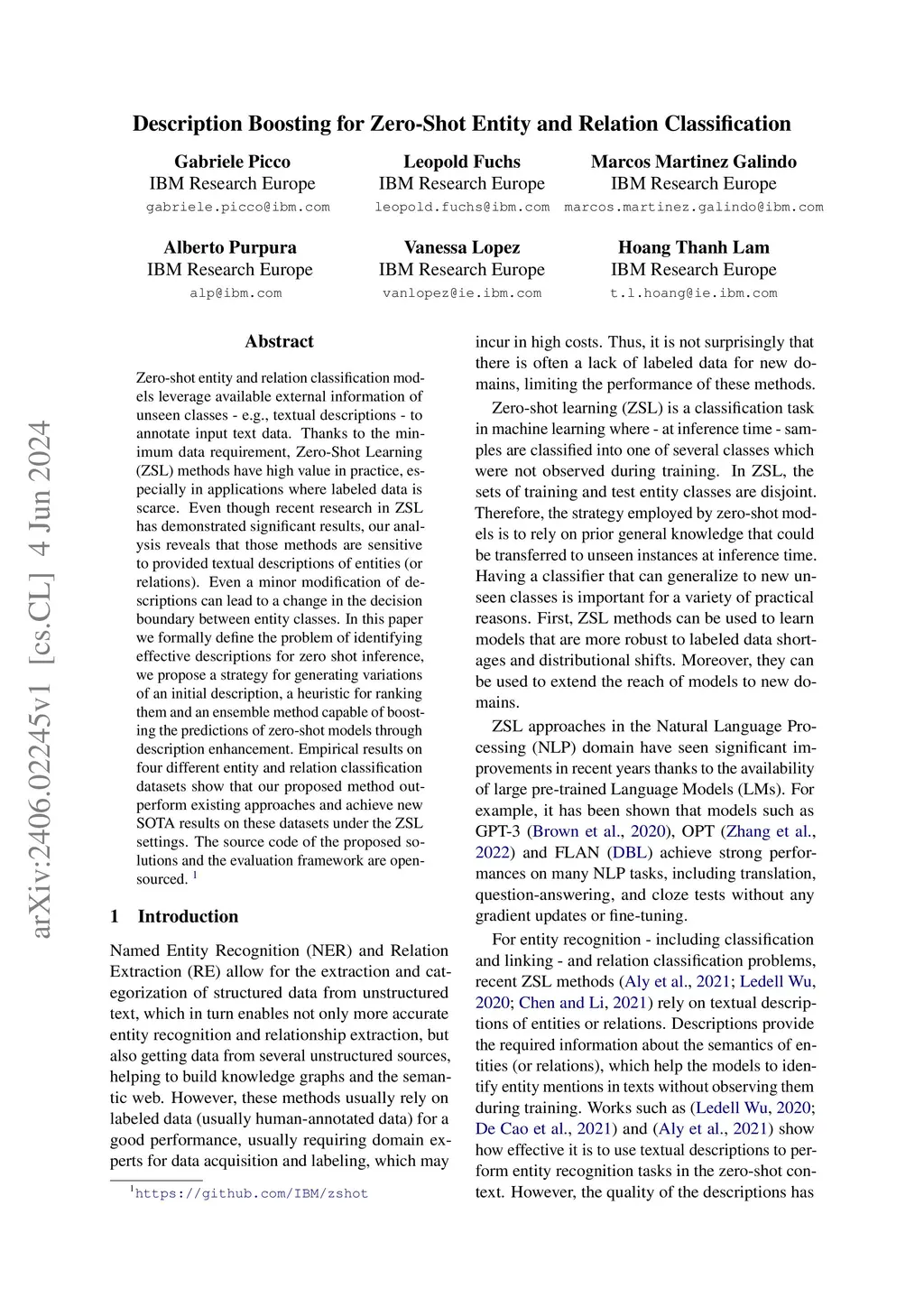 Description Boosting for Zero-Shot Entity and Relation Classification