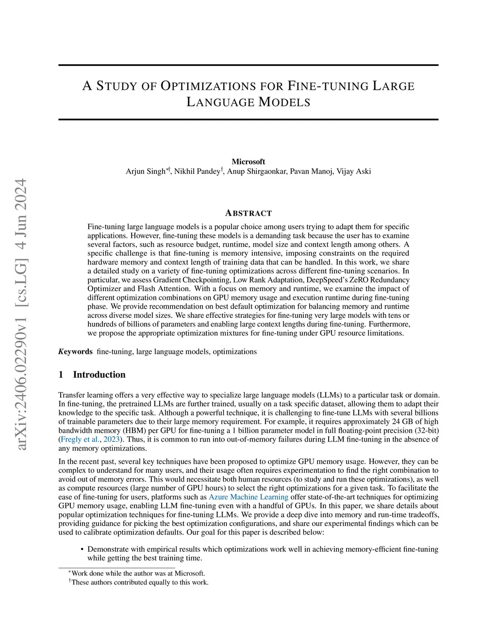 A Study of Optimizations for Fine-tuning Large Language Models