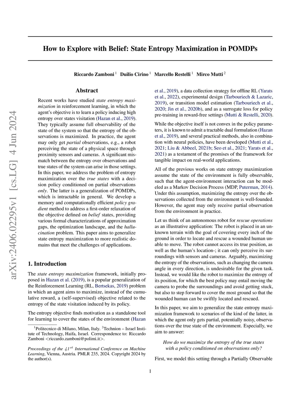 How to Explore with Belief: State Entropy Maximization in POMDPs