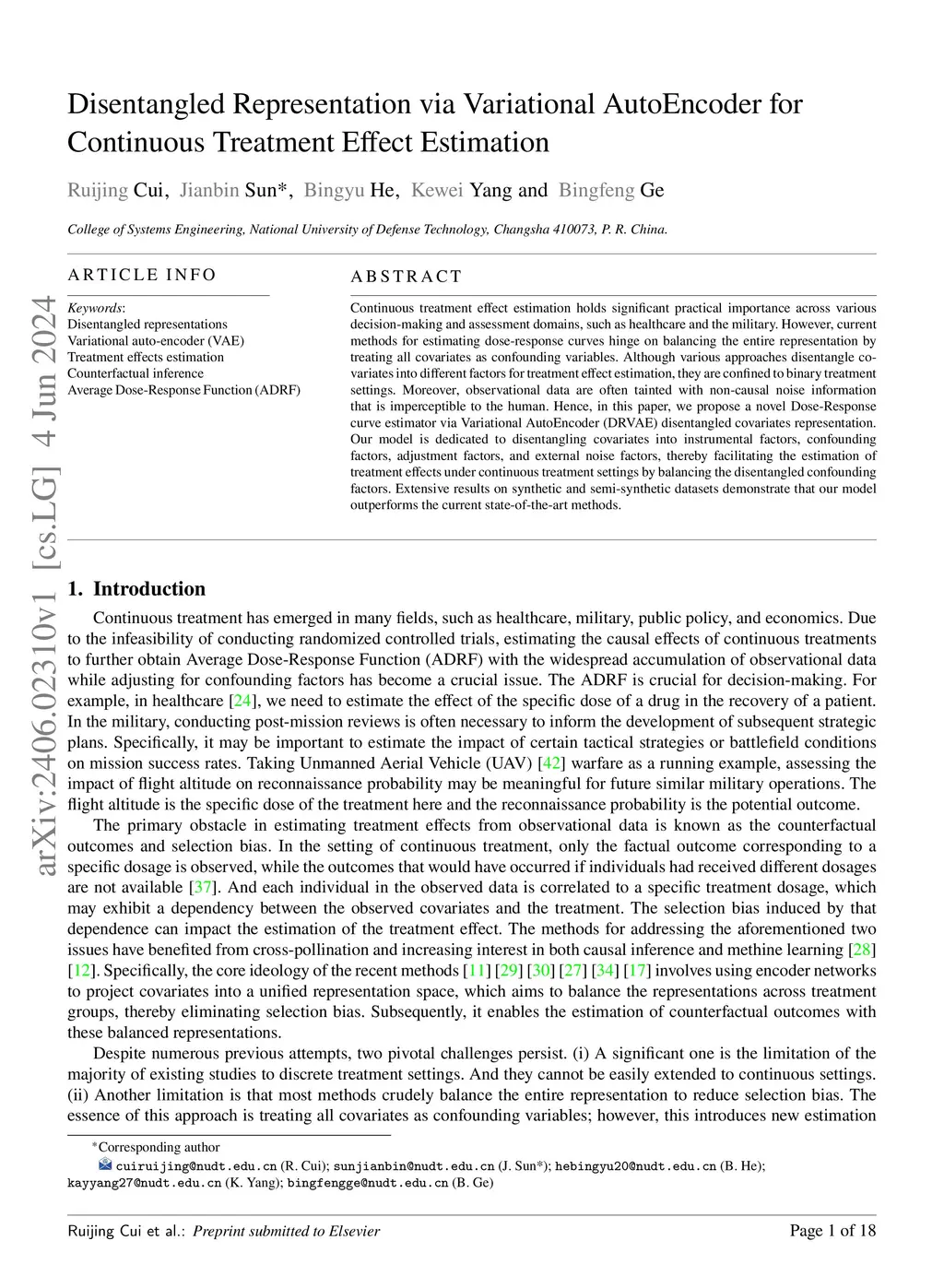 Continuous treatment effect estimation holds significant practical importance across various decision-making and assessment domains, such as healthcare and the military. However, current methods for estimating dose-response curves hinge on balancing the entire representation by treating all covariates as confounding variables. Although various approaches disentangle covariates into different factors for treatment effect estimation, they are confined to binary treatment settings. Moreover, observational data are often tainted with non-causal noise information that is imperceptible to the human. Hence, in this paper, we propose a novel Dose-Response curve estimator via Variational AutoEncoder (DRVAE) disentangled covariates representation. Our model is dedicated to disentangling covariates into instrumental factors, confounding factors, adjustment factors, and external noise factors, thereby facilitating the estimation of treatment effects under continuous treatment settings by balancing the disentangled confounding factors. Extensive results on synthetic and semi-synthetic datasets demonstrate that our model outperforms the current state-of-the-art methods.