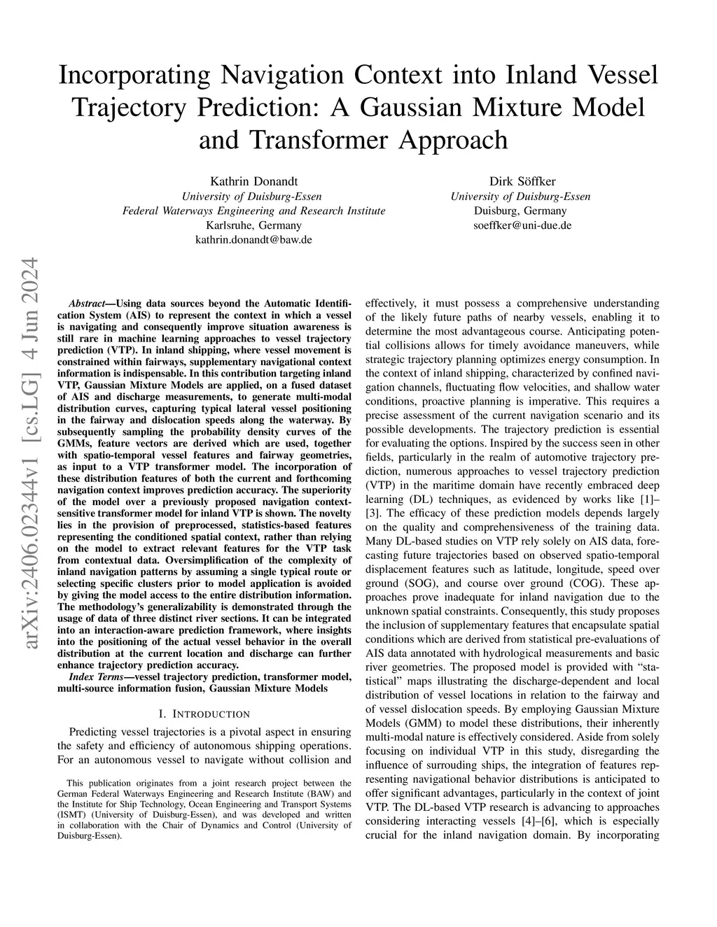 Incorporating Navigation Context into Inland Vessel Trajectory Prediction: A Gaussian Mixture Model and Transformer Approach
