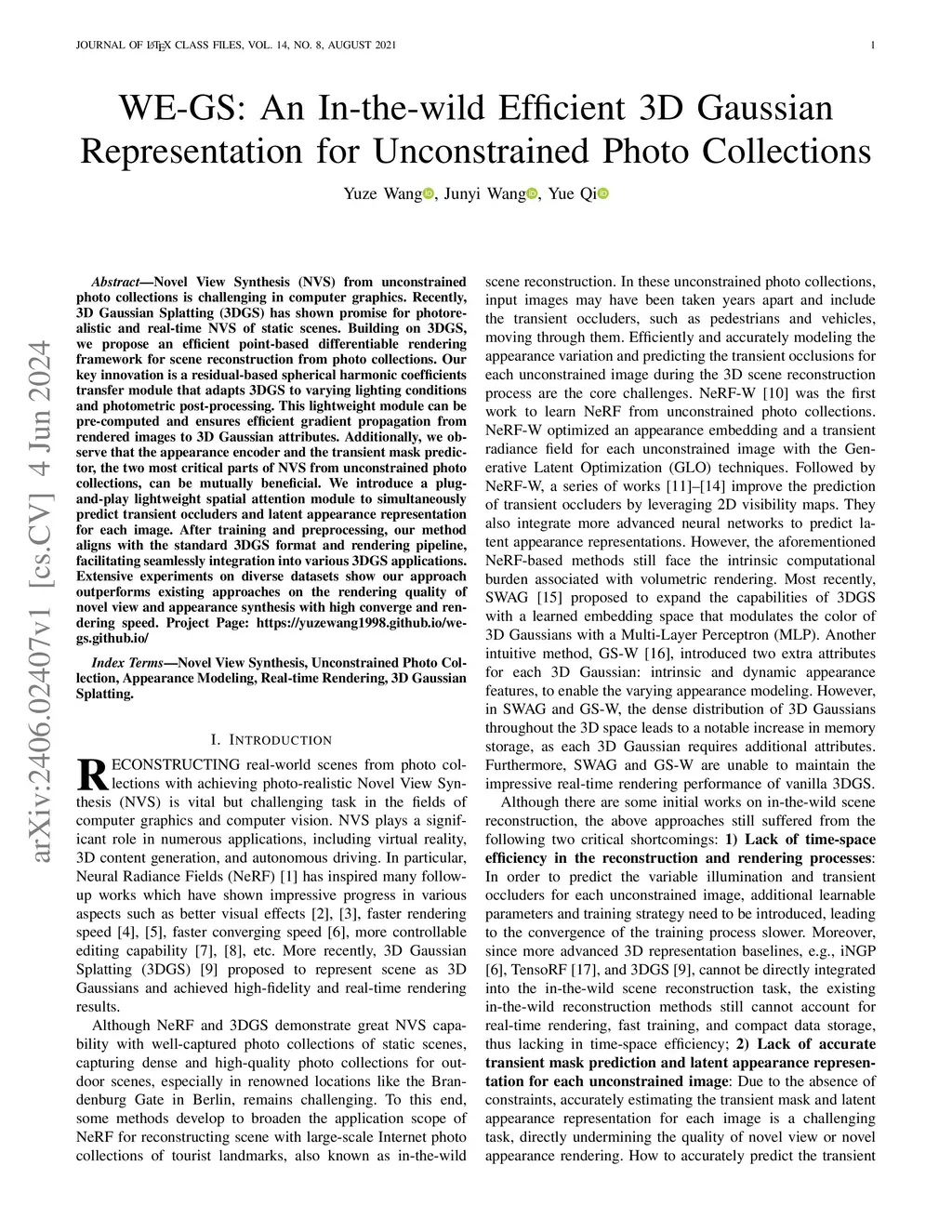 WE-GS: An In-the-wild Efficient 3D Gaussian Representation for