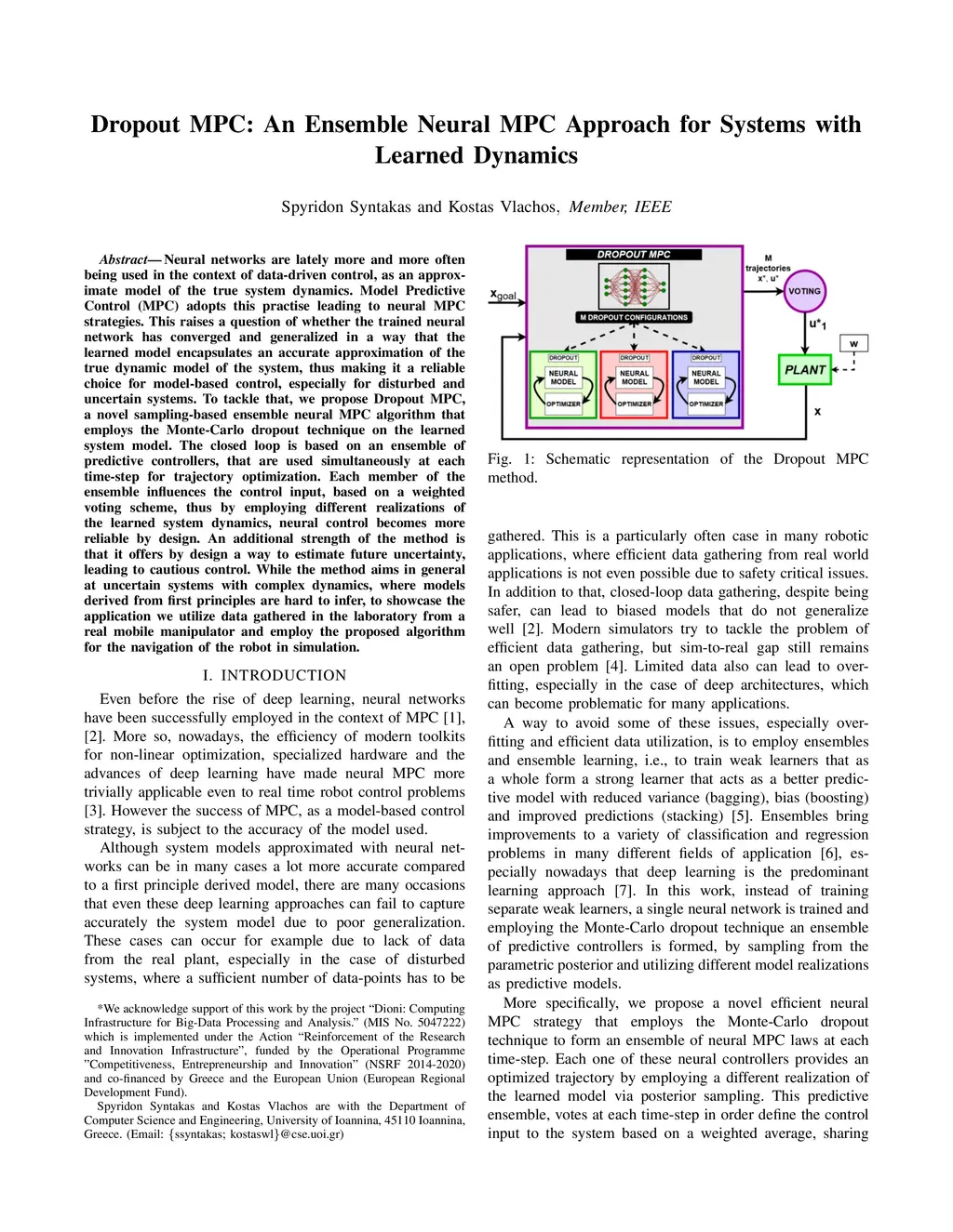 Dropout MPC: An Ensemble Neural MPC Approach for Systems with Learned