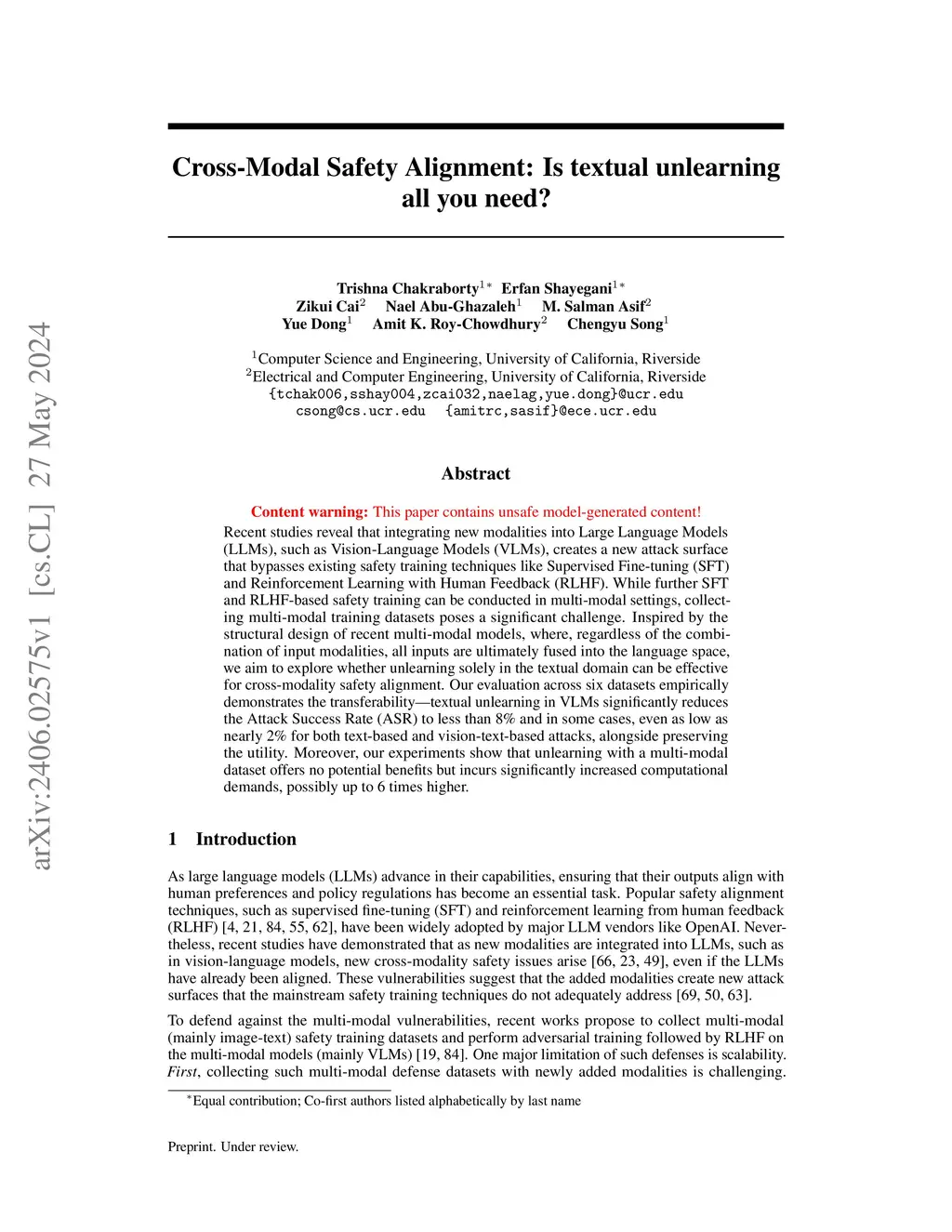 Cross-Modal Safety Alignment: Is textual unlearning all you need?