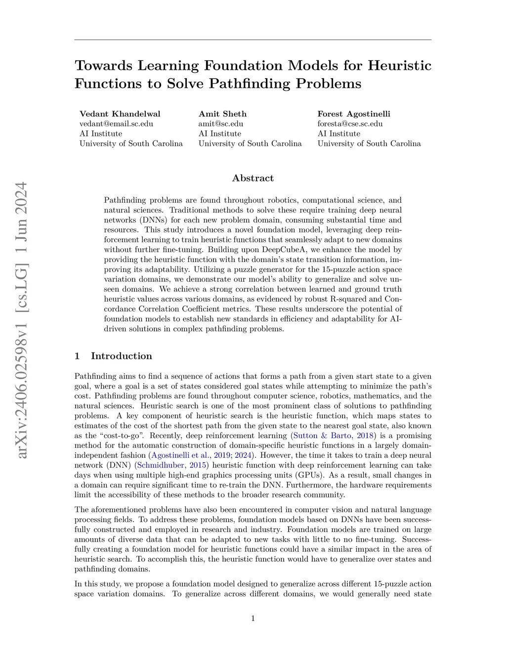 Pathfinding problems are found throughout robotics, computational science, and natural sciences. Traditional methods to solve these require training deep neural networks (DNNs) for each new problem domain, consuming substantial time and resources. This study introduces a novel foundation model, leveraging deep reinforcement learning to train heuristic functions that seamlessly adapt to new domains without further fine-tuning. Building upon DeepCubeA, we enhance the model by providing the heuristic function with the domain's state transition information, improving its adaptability. Utilizing a puzzle generator for the 15-puzzle action space variation domains, we demonstrate our model's ability to generalize and solve unseen domains. We achieve a strong correlation between learned and ground truth heuristic values across various domains, as evidenced by robust R-squared and Concordance Correlation Coefficient metrics. These results underscore the potential of foundation models to establish new standards in efficiency and adaptability for AI-driven solutions in complex pathfinding problems.