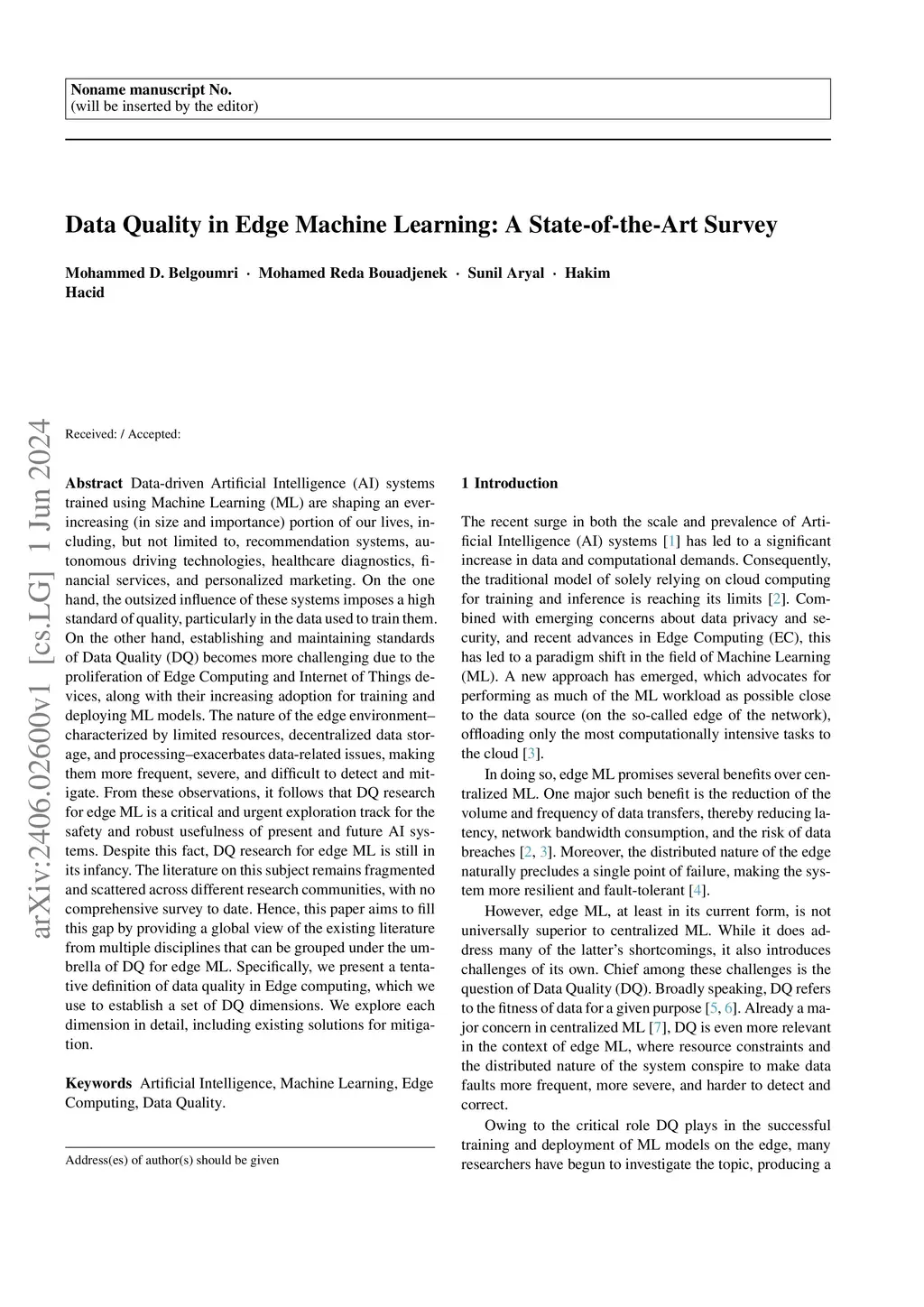 Data Quality in Edge Machine Learning: A State-of-the-Art Survey