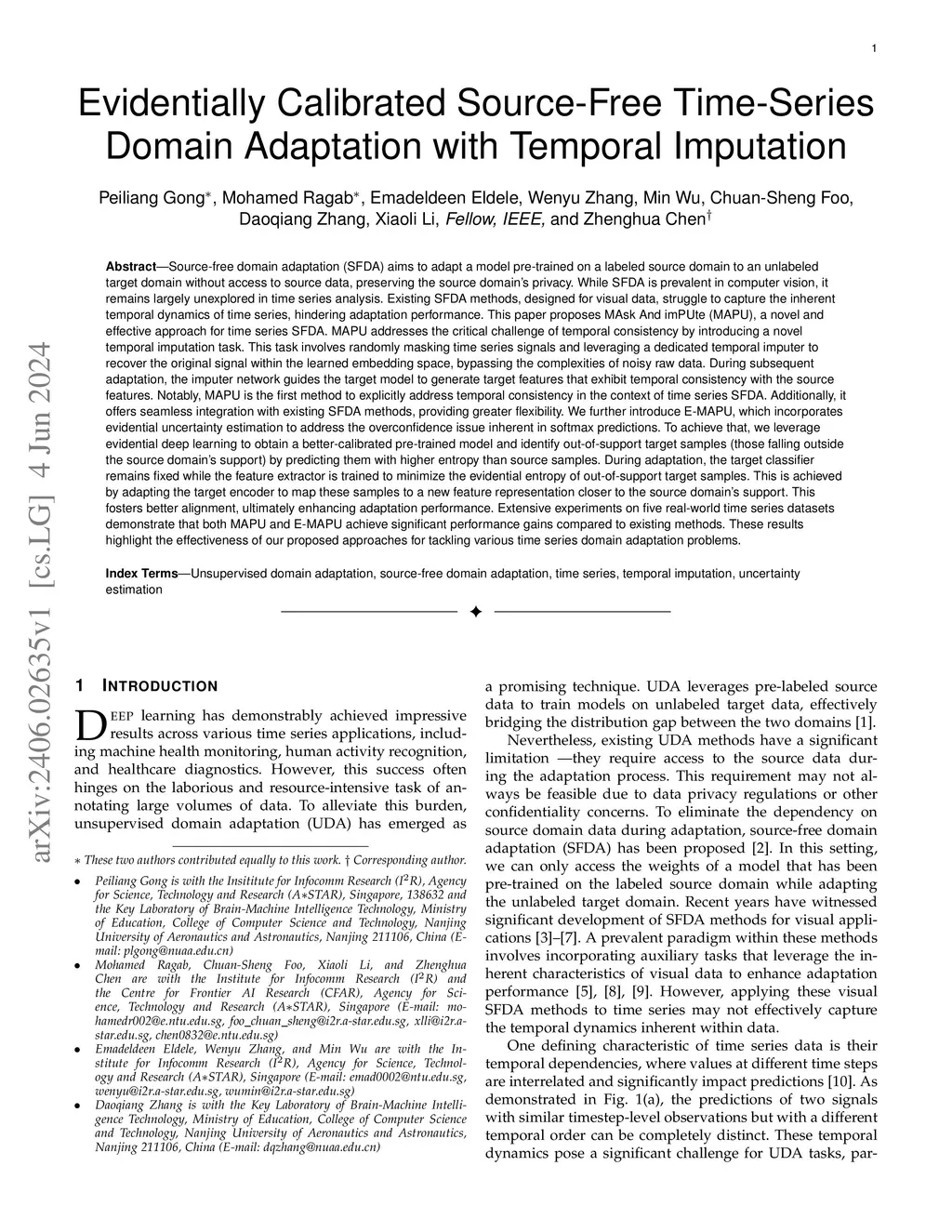 Source-free domain adaptation (SFDA) aims to adapt a model pre-trained on a labeled source domain to an unlabeled target domain without access to source data, preserving the source domain's privacy. While SFDA is prevalent in computer vision, it remains largely unexplored in time series analysis. Existing SFDA methods, designed for visual data, struggle to capture the inherent temporal dynamics of time series, hindering adaptation performance. This paper proposes MAsk And imPUte (MAPU), a novel and effective approach for time series SFDA. MAPU addresses the critical challenge of temporal consistency by introducing a novel temporal imputation task. This task involves randomly masking time series signals and leveraging a dedicated temporal imputer to recover the original signal within the learned embedding space, bypassing the complexities of noisy raw data. Notably, MAPU is the first method to explicitly address temporal consistency in the context of time series SFDA. Additionally, it offers seamless integration with existing SFDA methods, providing greater flexibility. We further introduce E-MAPU, which incorporates evidential uncertainty estimation to address the overconfidence issue inherent in softmax predictions. To achieve that, we leverage evidential deep learning to obtain a better-calibrated pre-trained model and adapt the target encoder to map out-of-support target samples to a new feature representation closer to the source domain's support. This fosters better alignment, ultimately enhancing adaptation performance. Extensive experiments on five real-world time series datasets demonstrate that both MAPU and E-MAPU achieve significant performance gains compared to existing methods. These results highlight the effectiveness of our proposed approaches for tackling various time series domain adaptation problems.