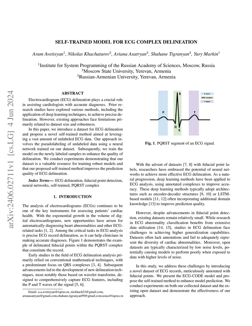 Electrocardiogram (ECG) delineation plays a crucial role in assisting cardiologists with accurate diagnoses. Prior research studies have explored various methods, including the application of deep learning techniques, to achieve precise delineation. However, existing approaches face limitations primarily related to dataset size and robustness. In this paper, we introduce a dataset for ECG delineation and propose a novel self-trained method aimed at leveraging a vast amount of unlabeled ECG data. Our approach involves the pseudolabeling of unlabeled data using a neural network trained on our dataset. Subsequently, we train the model on the newly labeled samples to enhance the quality of delineation. We conduct experiments demonstrating that our dataset is a valuable resource for training robust models and that our proposed self-trained method improves the prediction quality of ECG delineation.