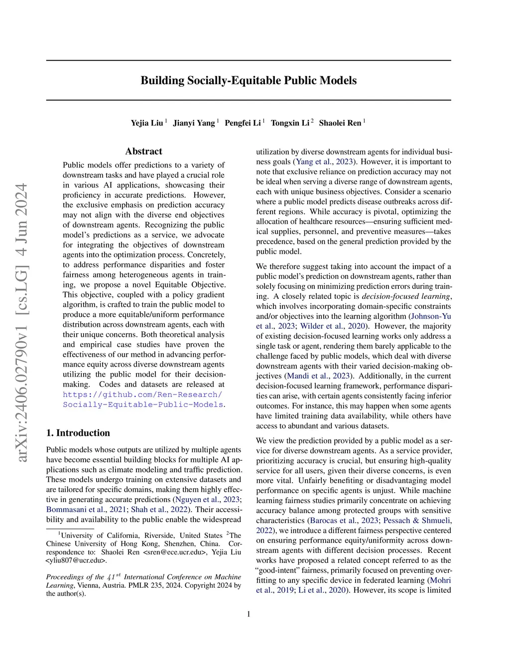 Building Socially-Equitable Public Models